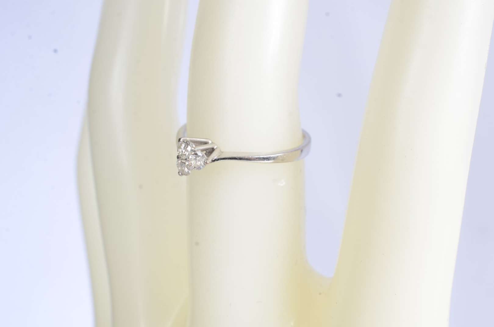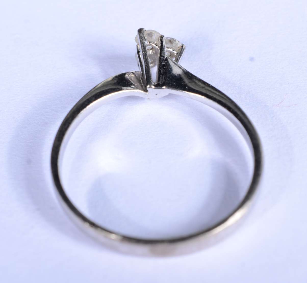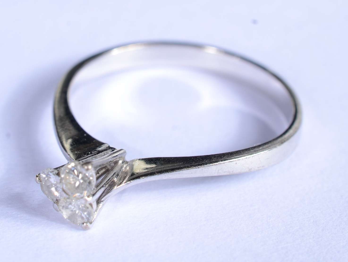 Anel de ouro branco feitio chuveiro cravejado com 7 brilhantes, aro 14. (Por motivos de segurança a peça não se enco...