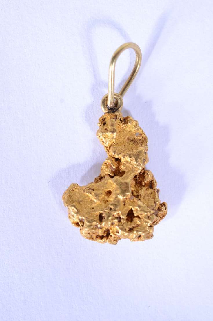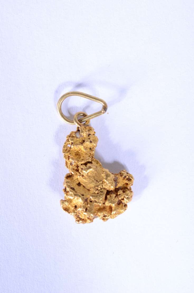 Pendente no feitio de pepita de ouro 18 k. (Por motivos de segurança a peça não se encontra na loja).