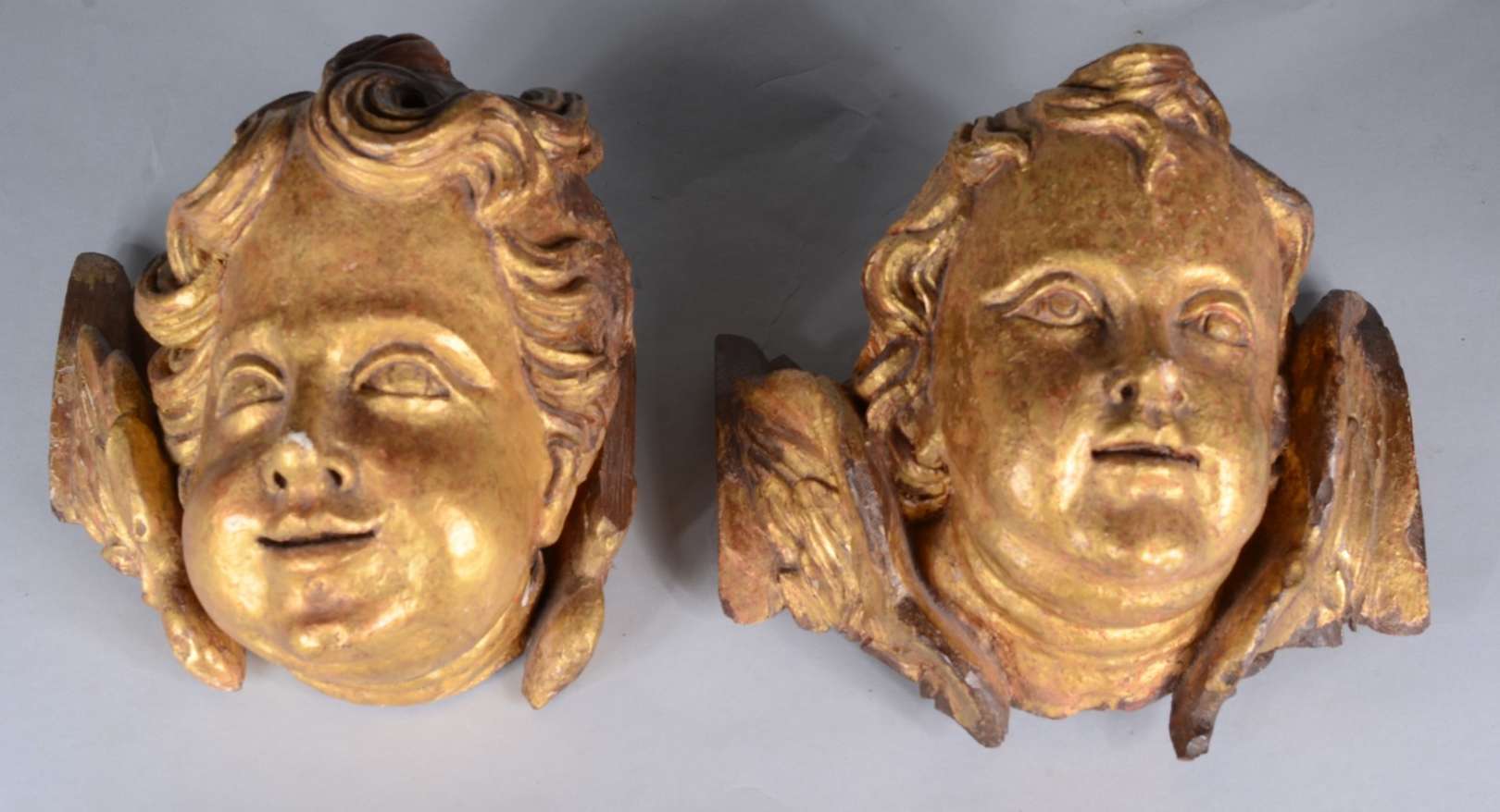 Duas antigas imagens sacras de papier mâché e madeira policromada.