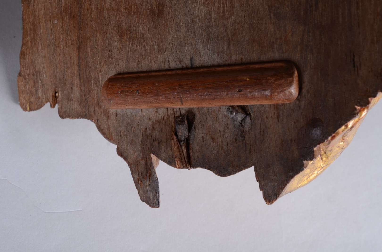 Duas antigas imagens de madeira policromada com resquícios dourados representado São João Batista e Bispo. Com desgas...
