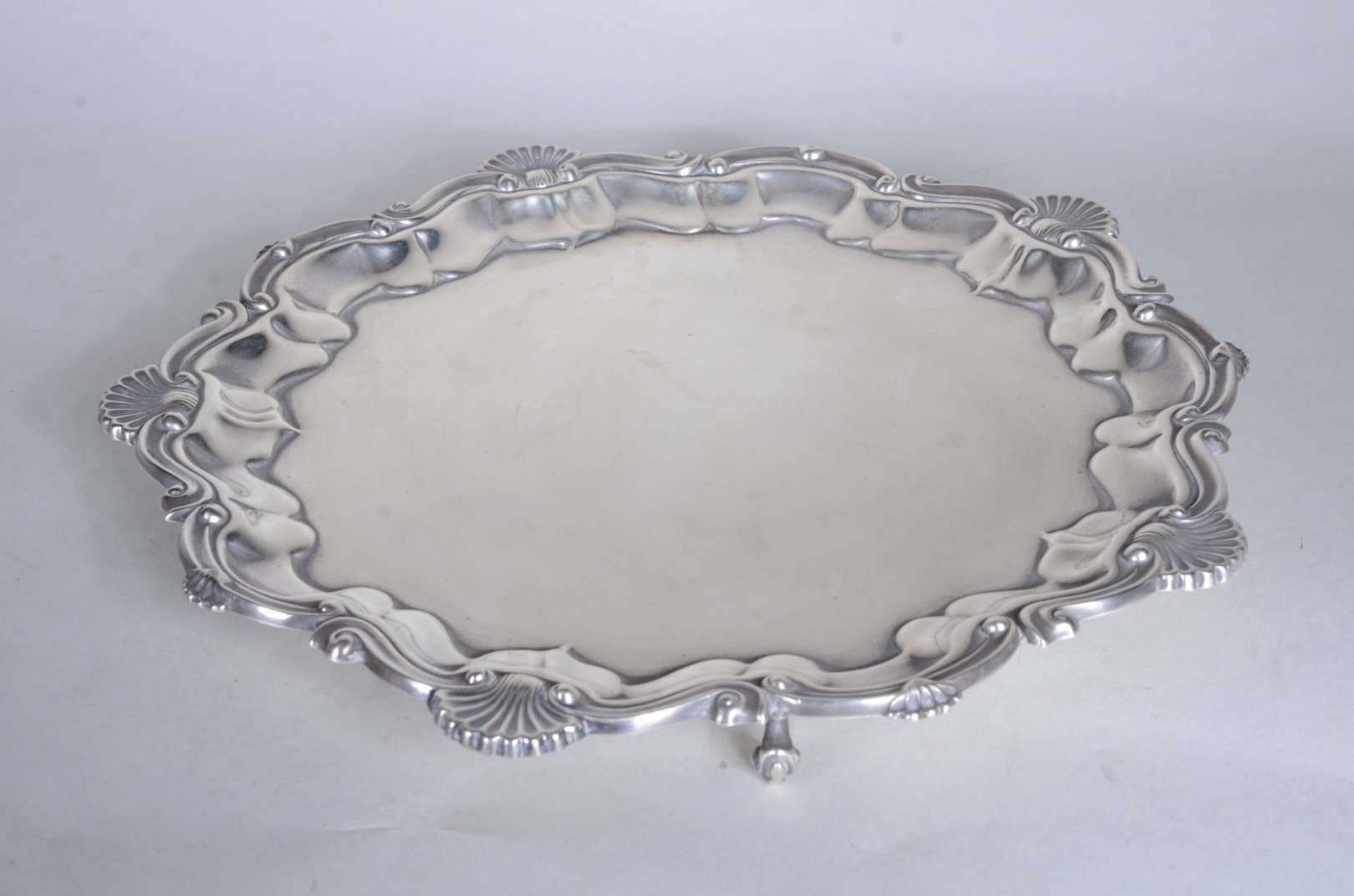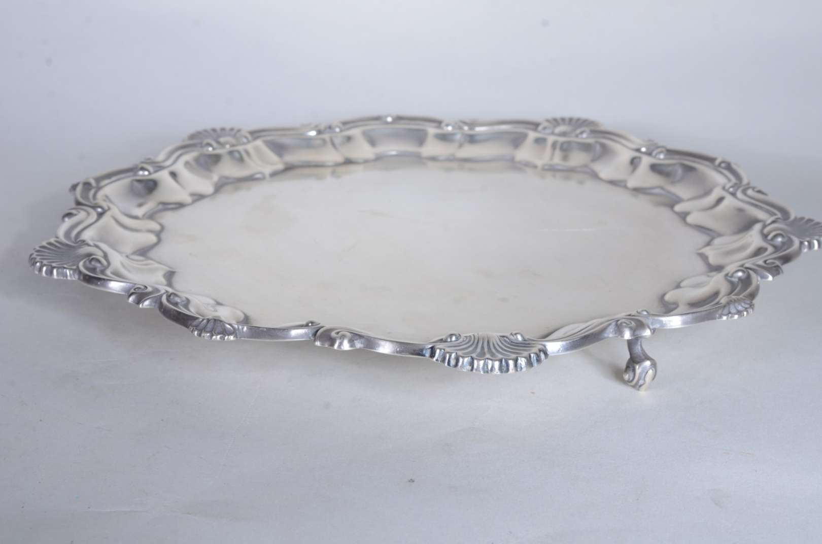 Salva de prata D. Maria, pés de garra (com amassados). Peso da prata: 170 g. (Por motivos de segurança a peça não se...