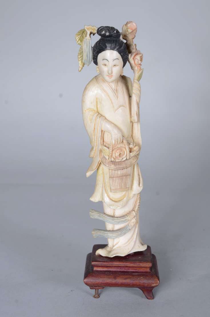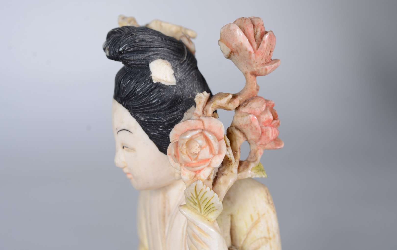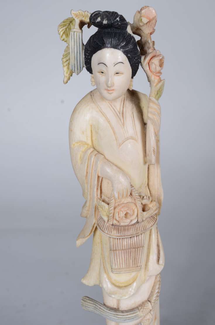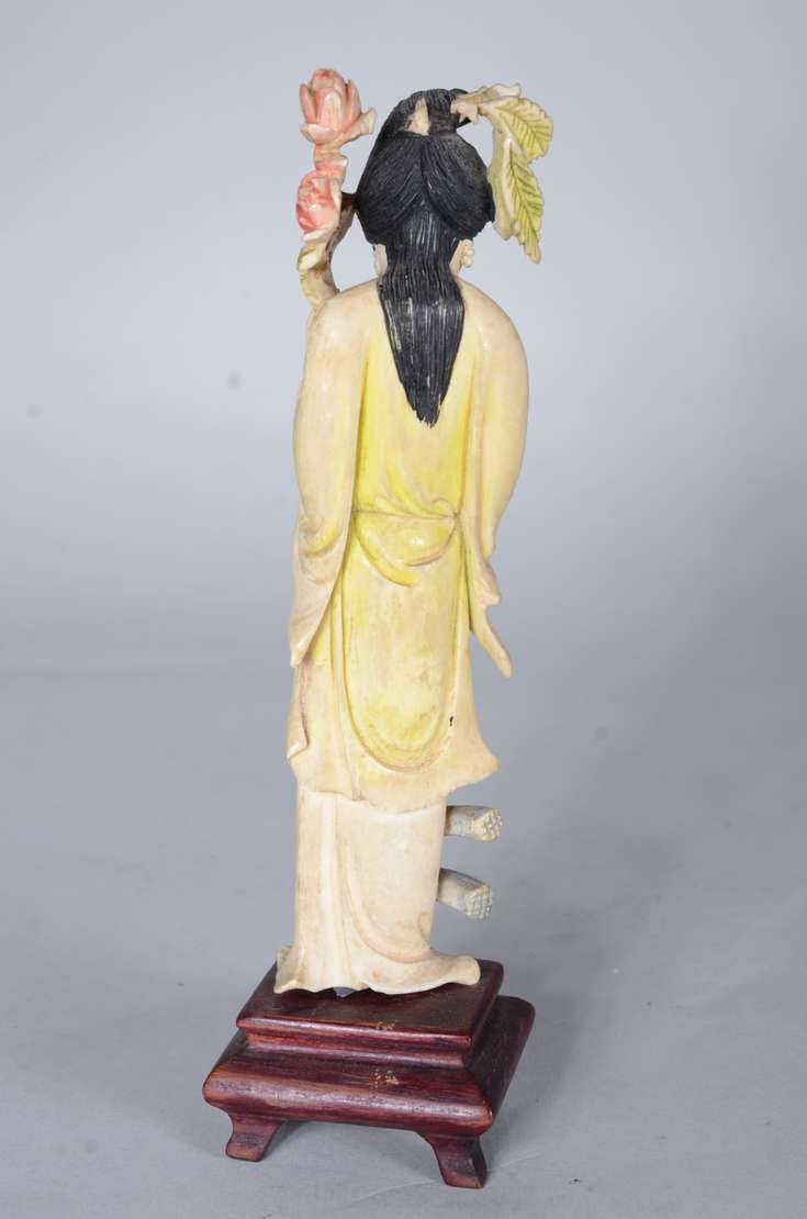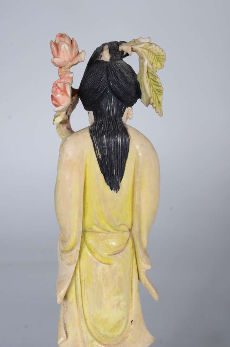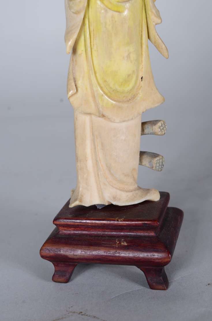 Escultura de marfim representando "Divindade Indiana". Mão colada.
