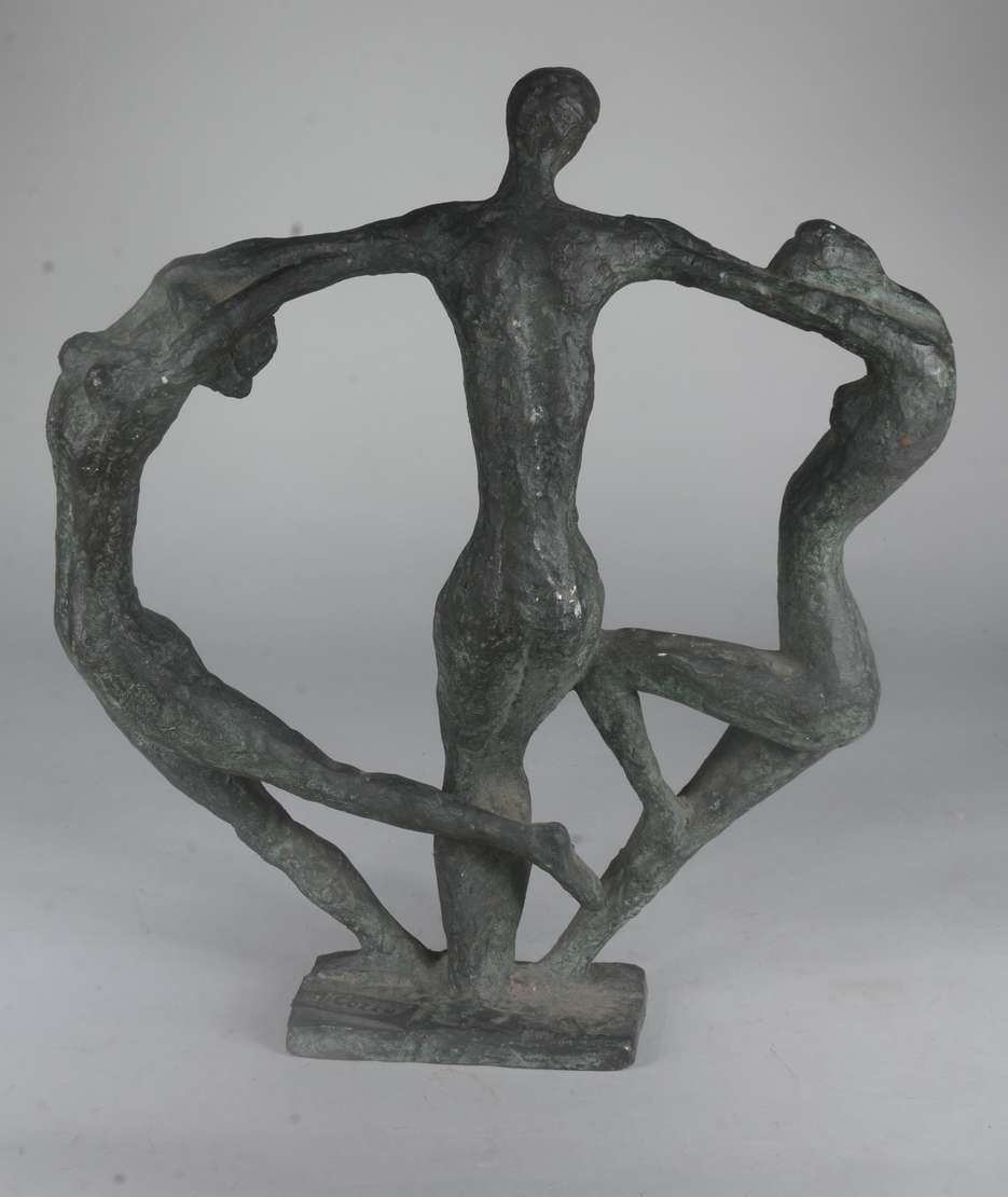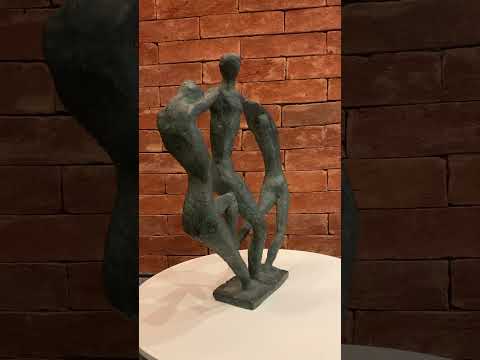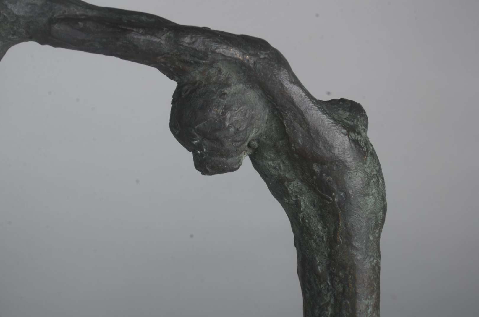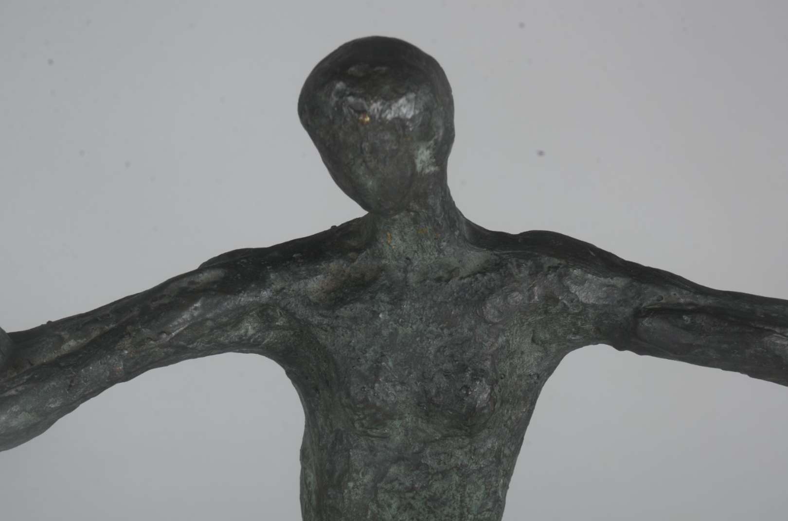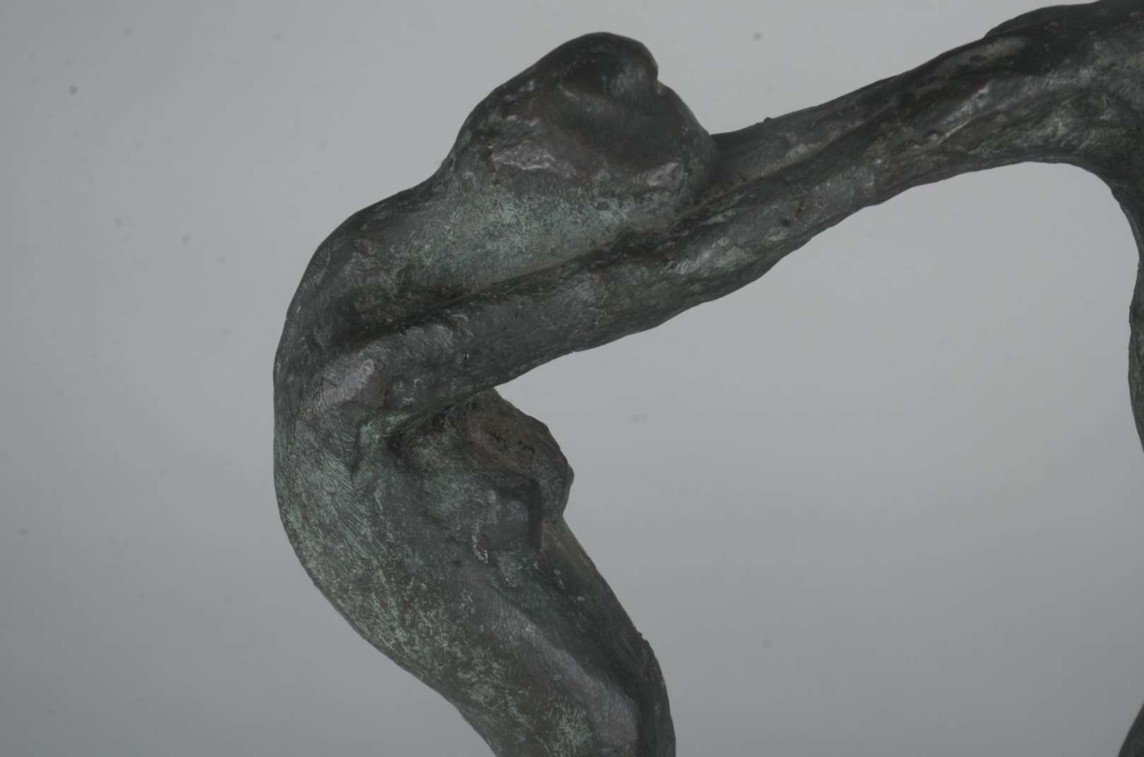Escultura de bronze representando bailarina, base de mármore preto.