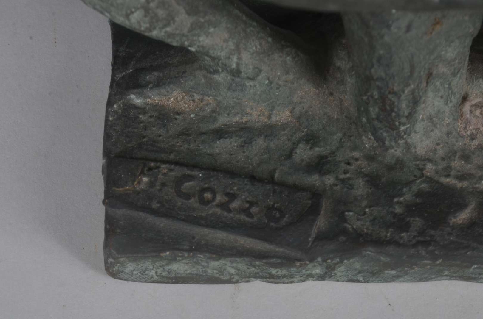 Grupo escultórico de bronze, representando São Jorge flechando o dragão.