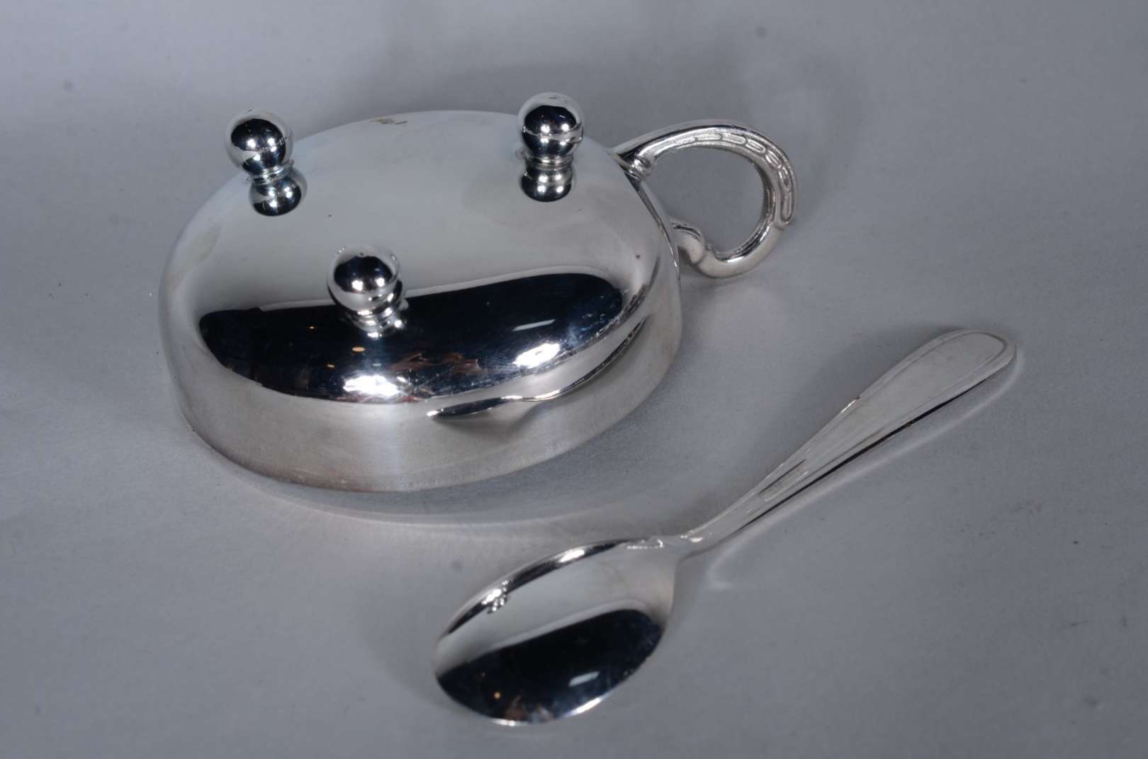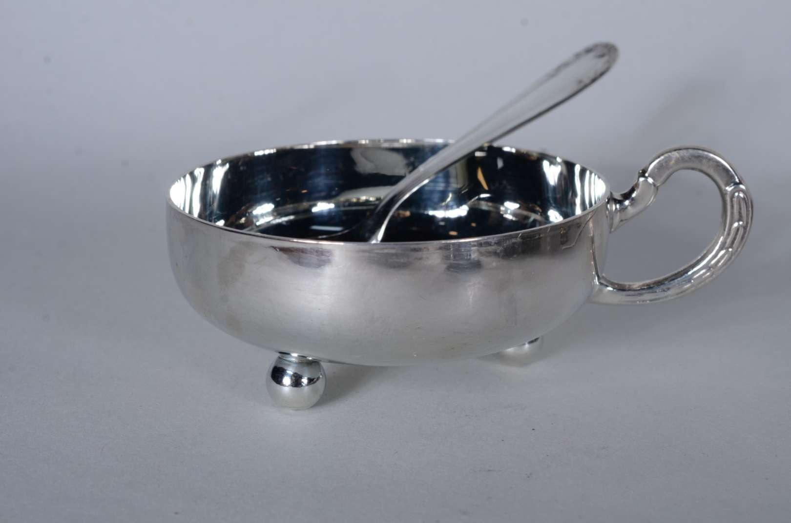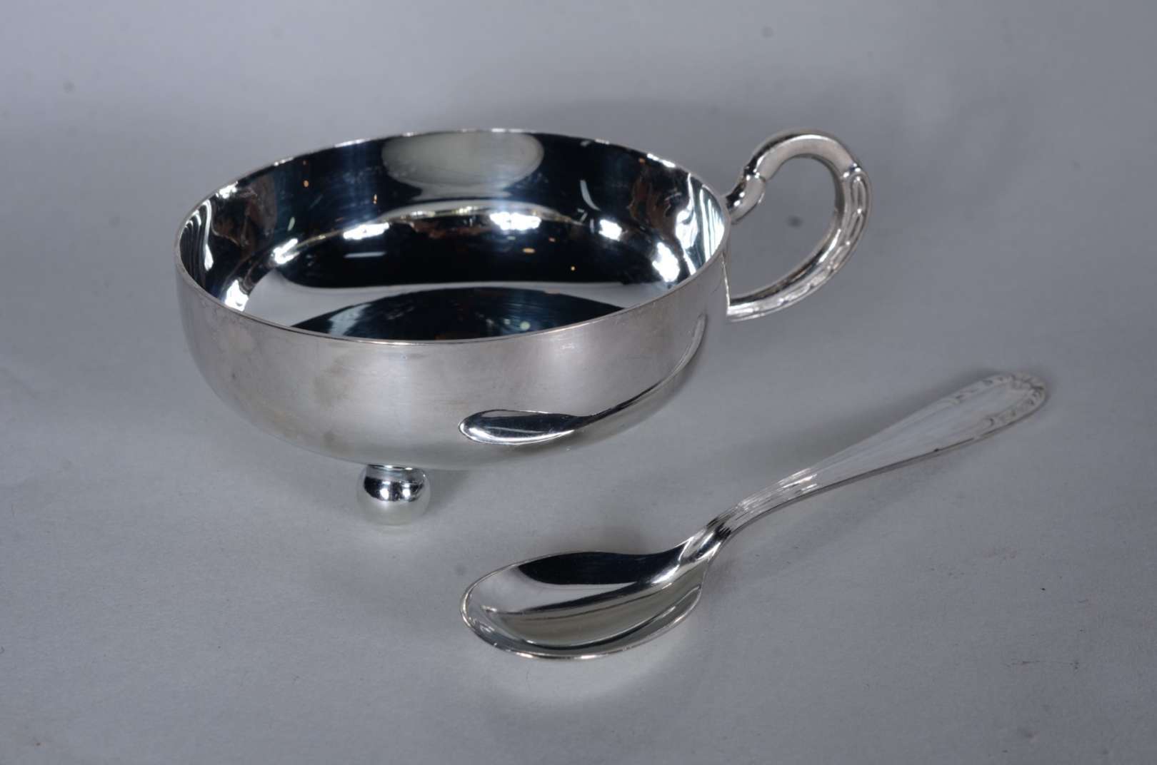 Conjunto com 35 taças com colheres para sorvete de metal prateado.