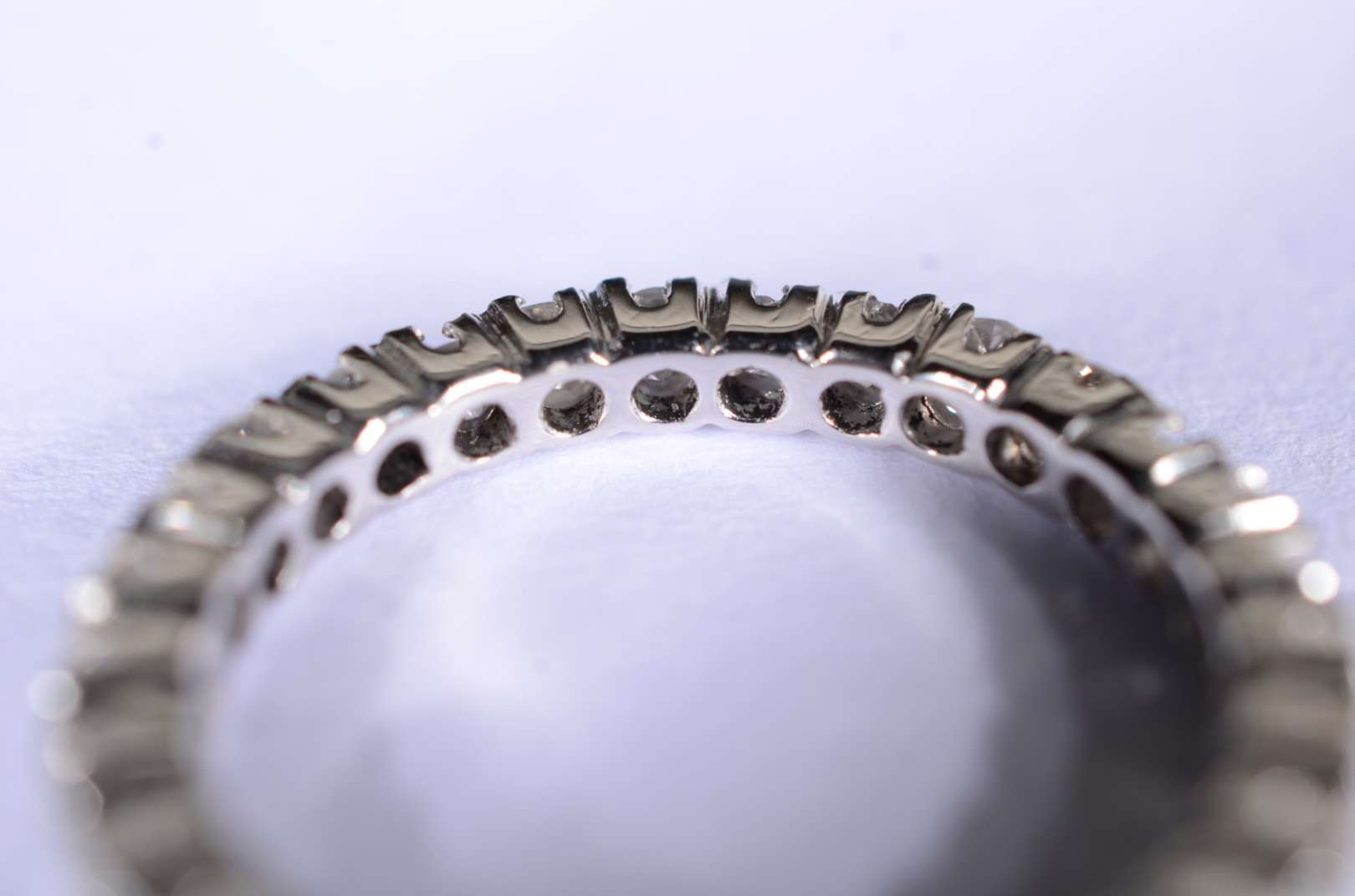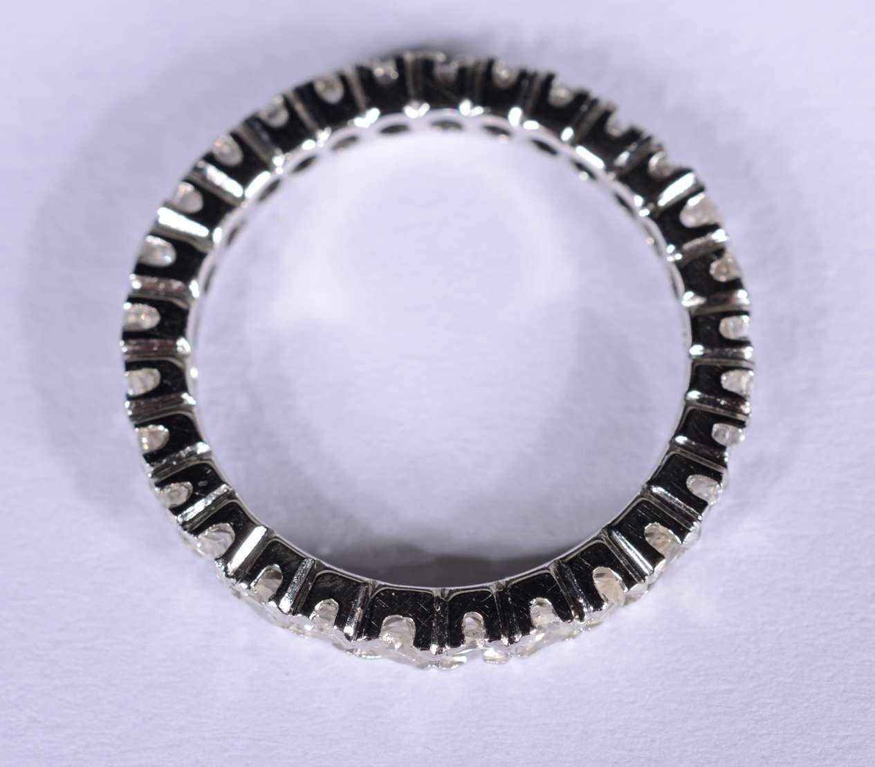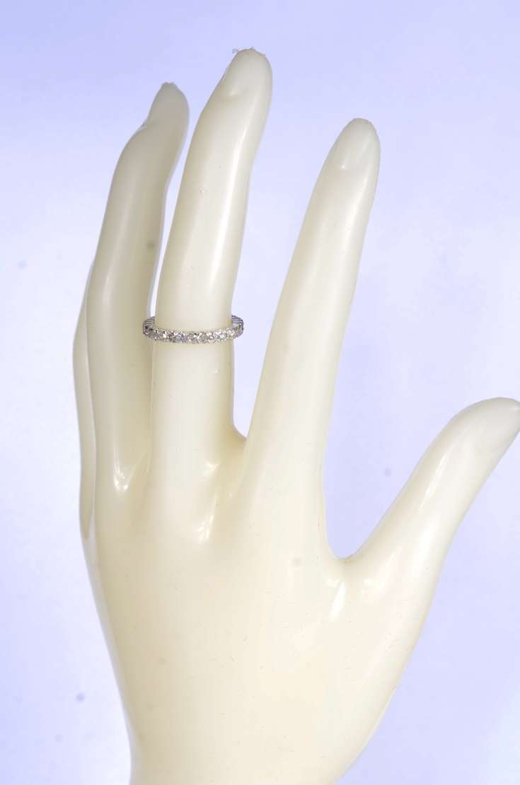 Anel de ouro branco feitio chuveiro cravejado com 7 brilhantes, aro 14. (Por motivos de segurança a peça não se enco...