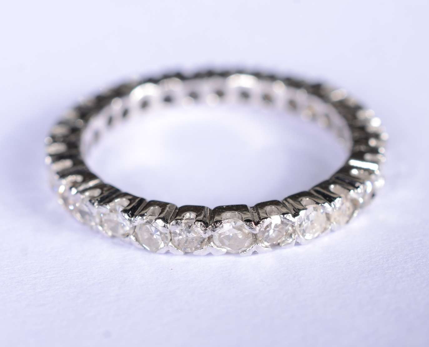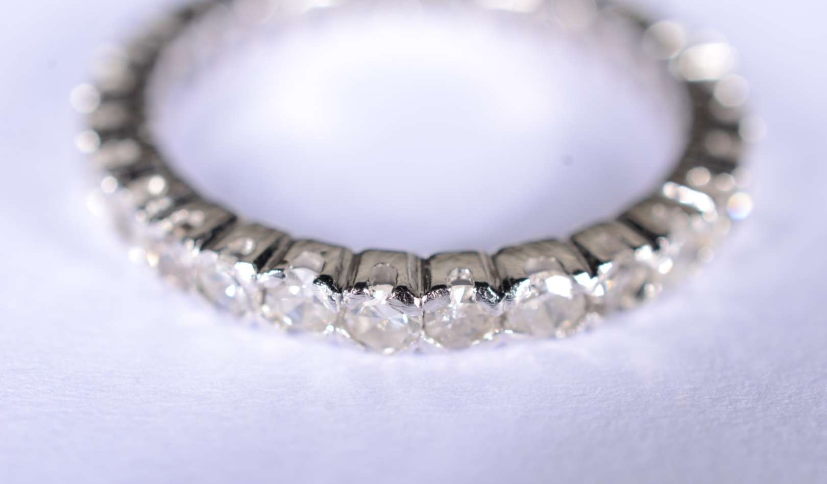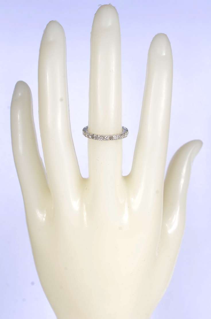 Anel de ouro branco feitio chuveiro cravejado com 7 brilhantes, aro 14. (Por motivos de segurança a peça não se enco...