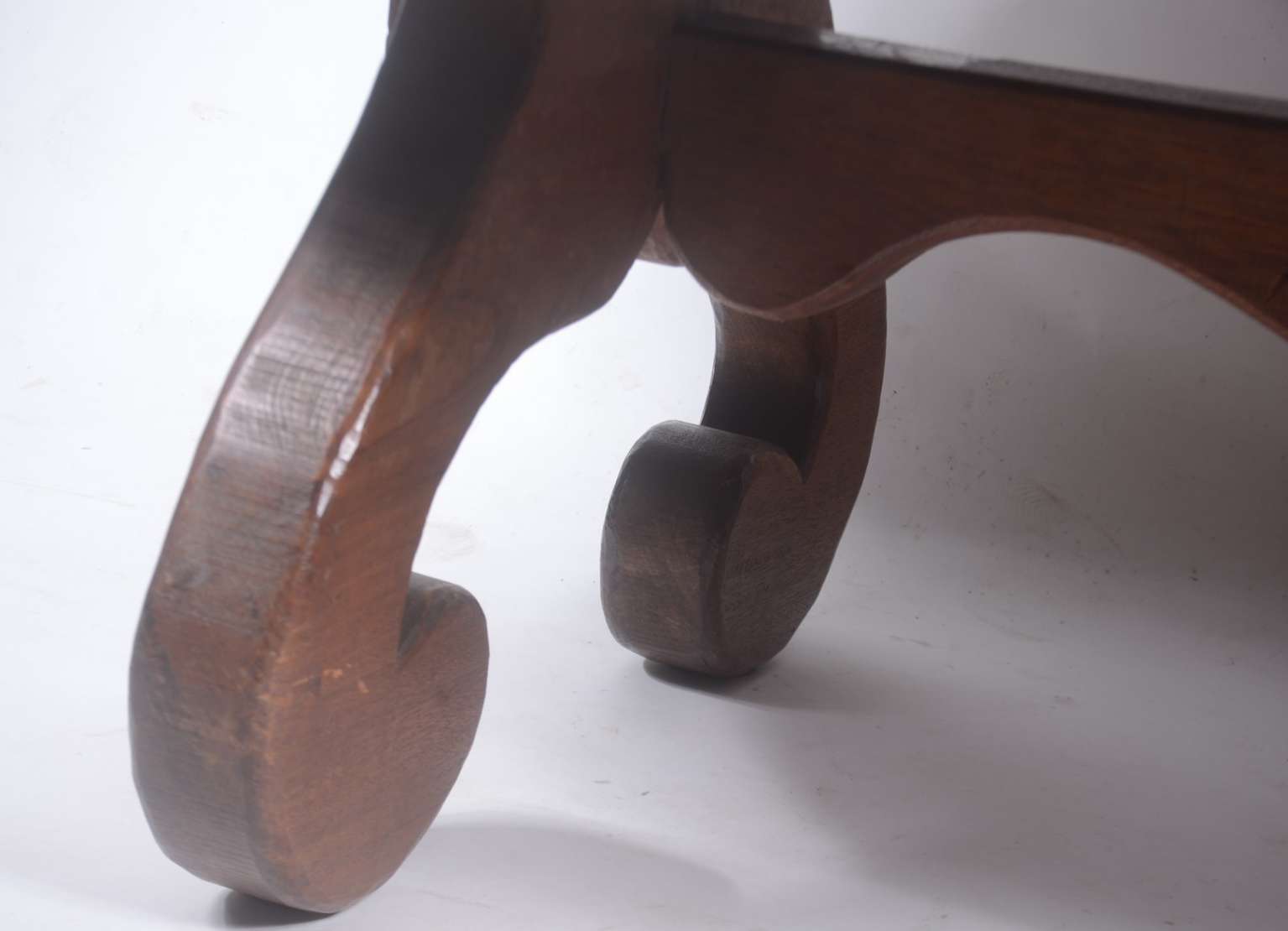 Pequena cadeira baixa de madeira nobre torneada.