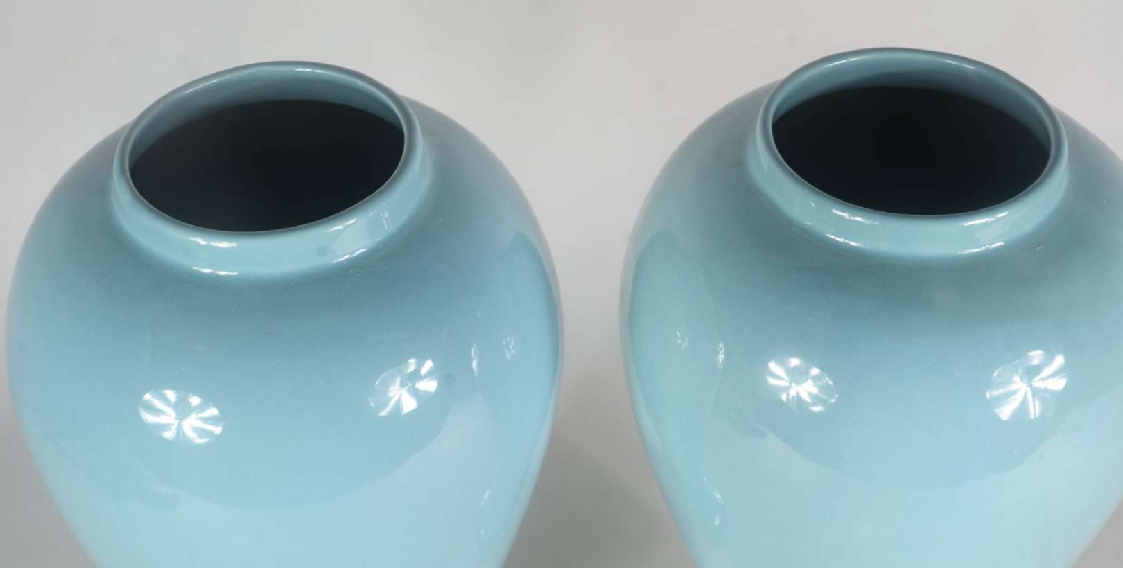 Par de vasos de vidro decorativo com paisagem em tom de verde.