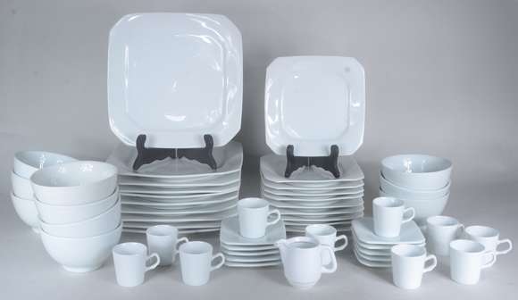 Aparelho de jantar de porcelana Schmidt na cor branca, composto de: 12 pratos rasos; 12 pratos fundos; 12 pratos de s...