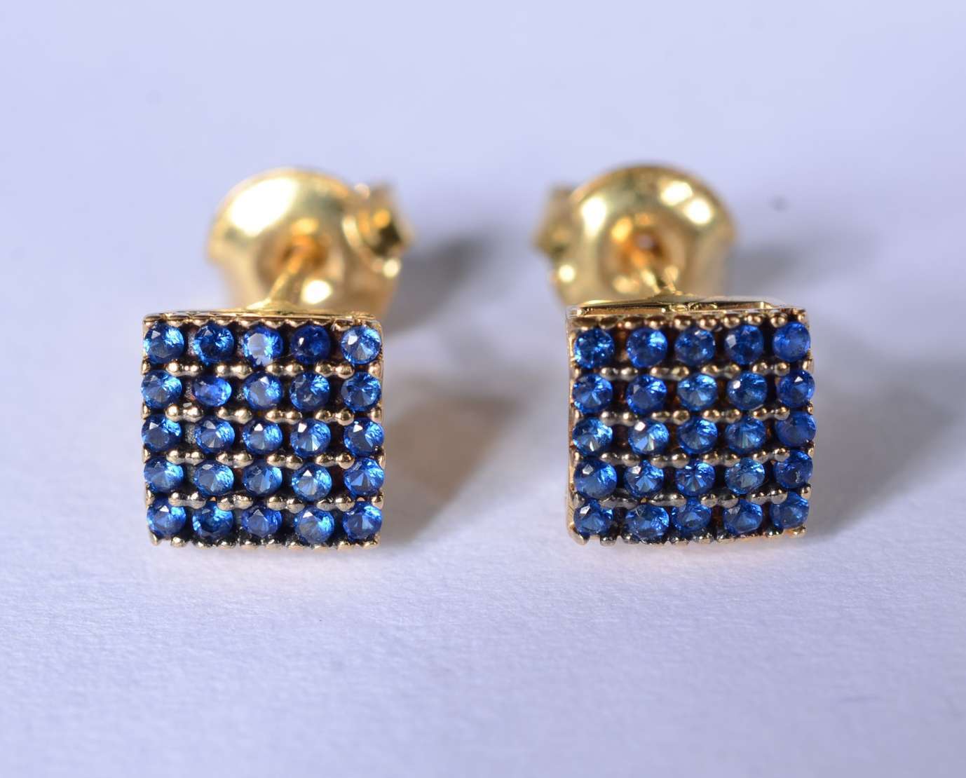 Par de brincos de ouro 18 k, contraste 750 feitio quadrado. (Por motivos de segurança a peça não se encontra na loja).