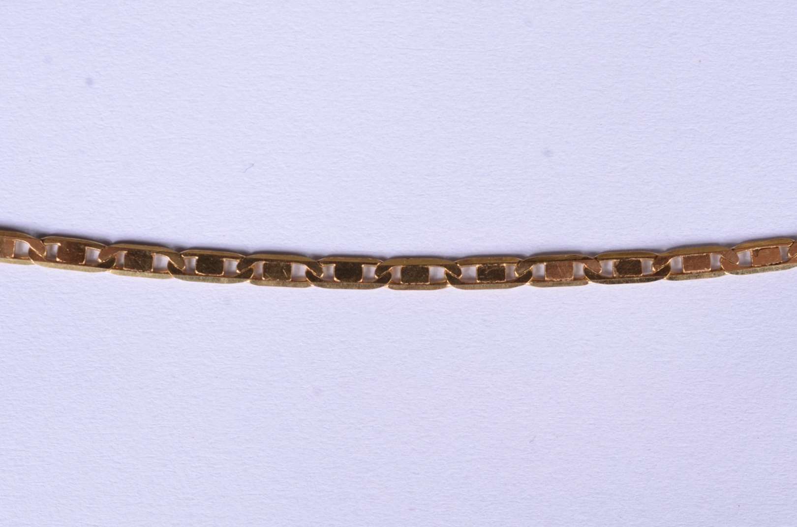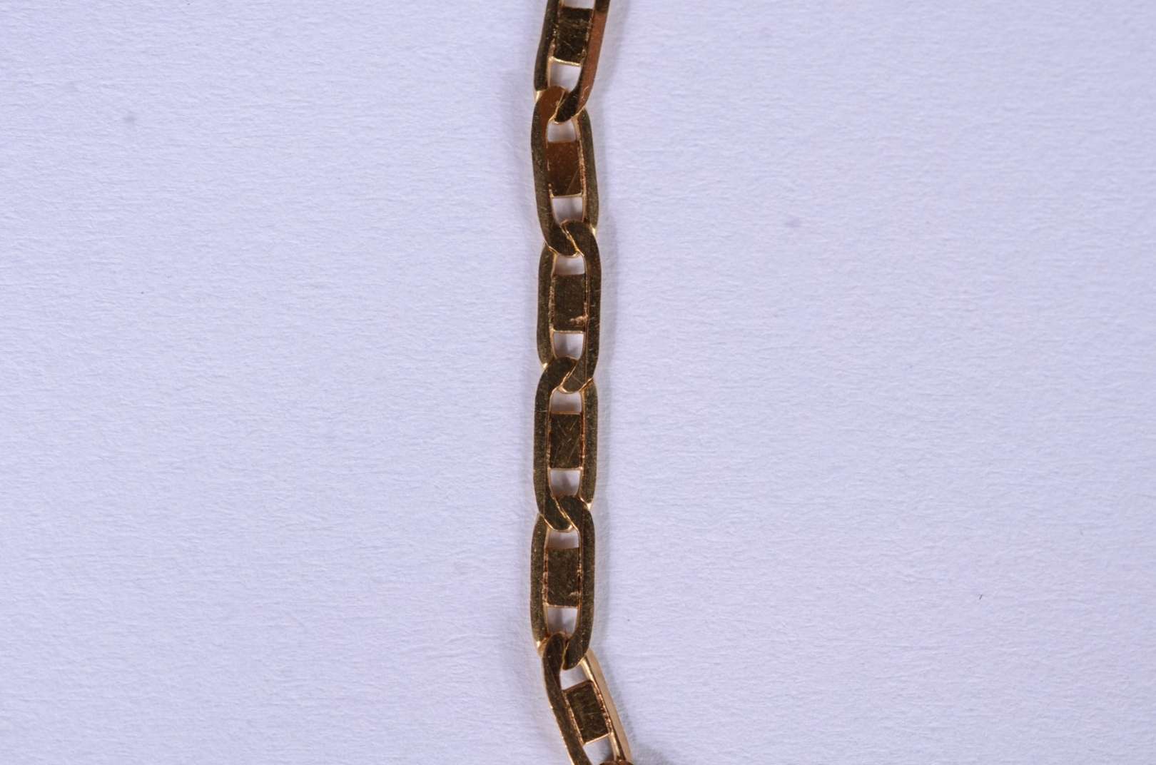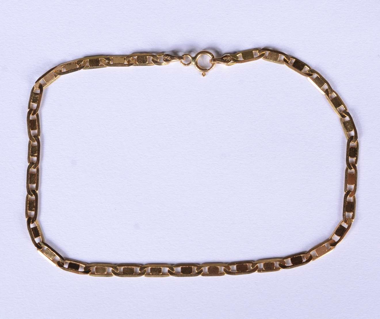 Pequena pulseira de ouro 18 k., elós batidos. (Por motivos de segurança a peça não se encontra na loja).