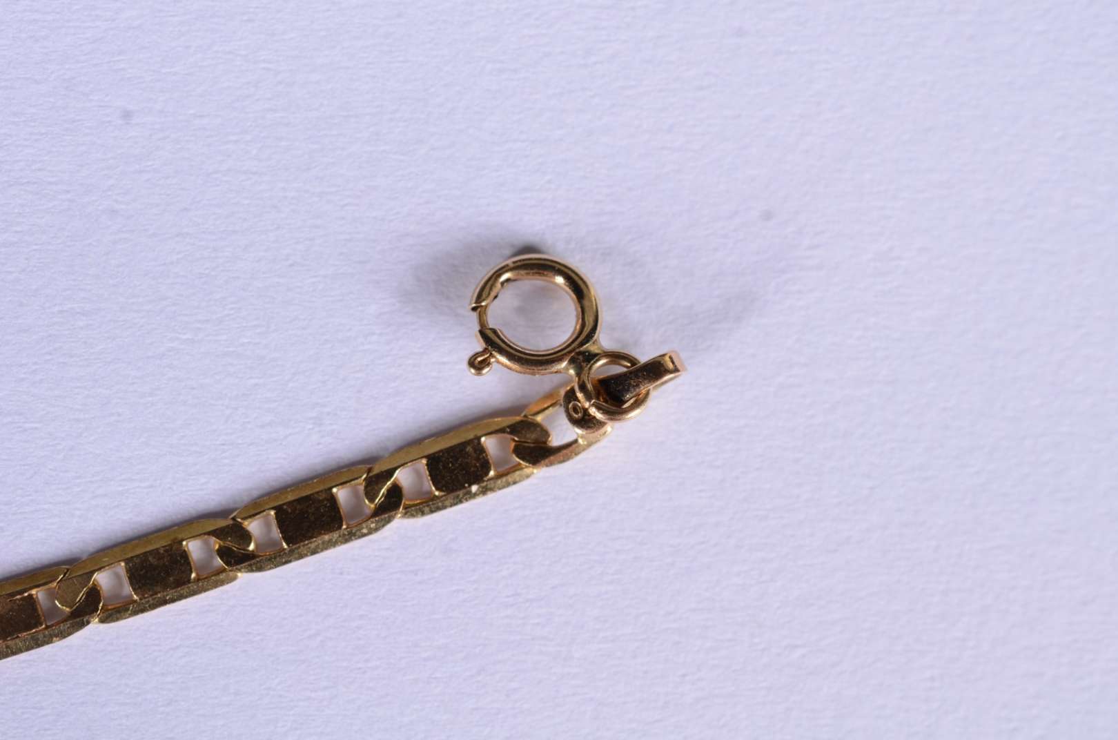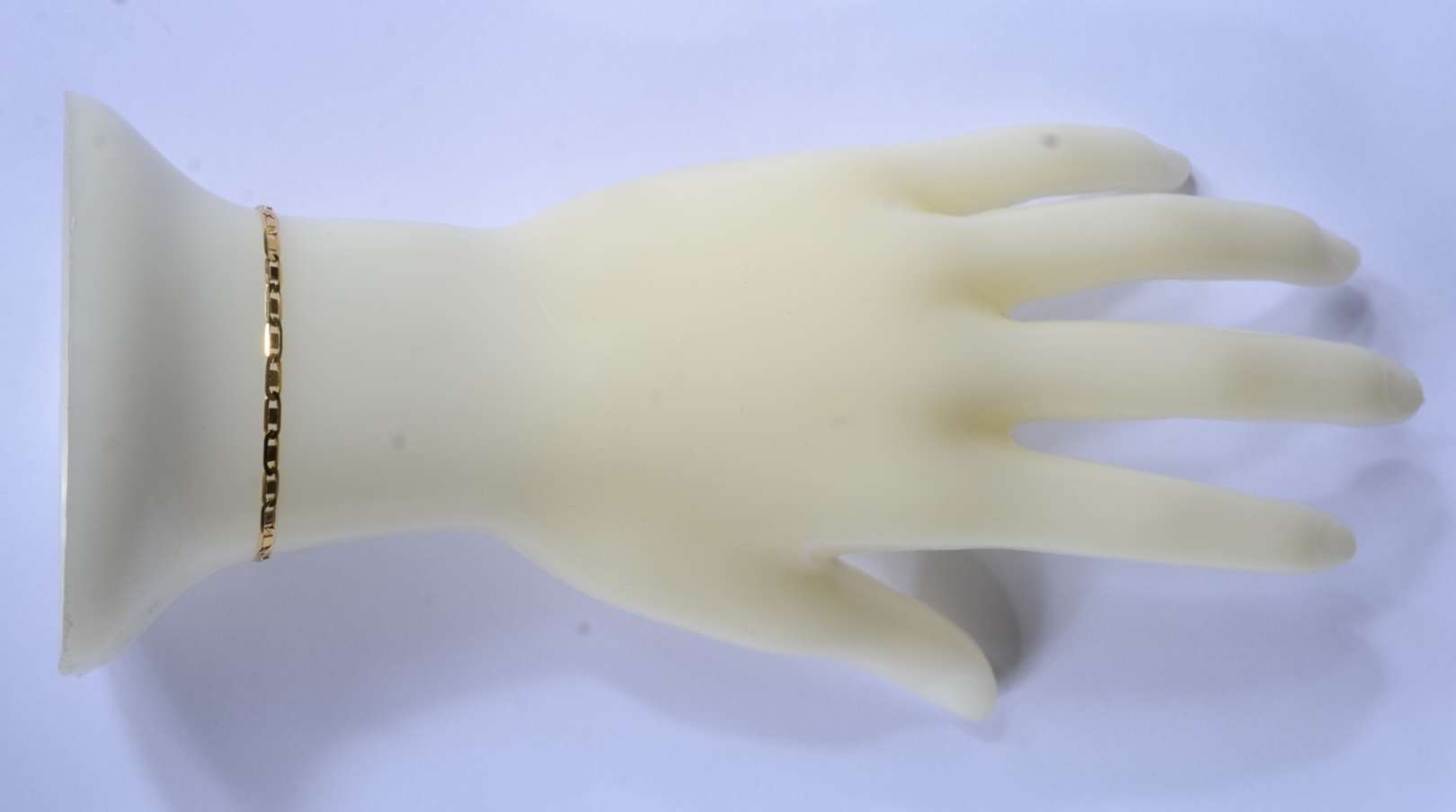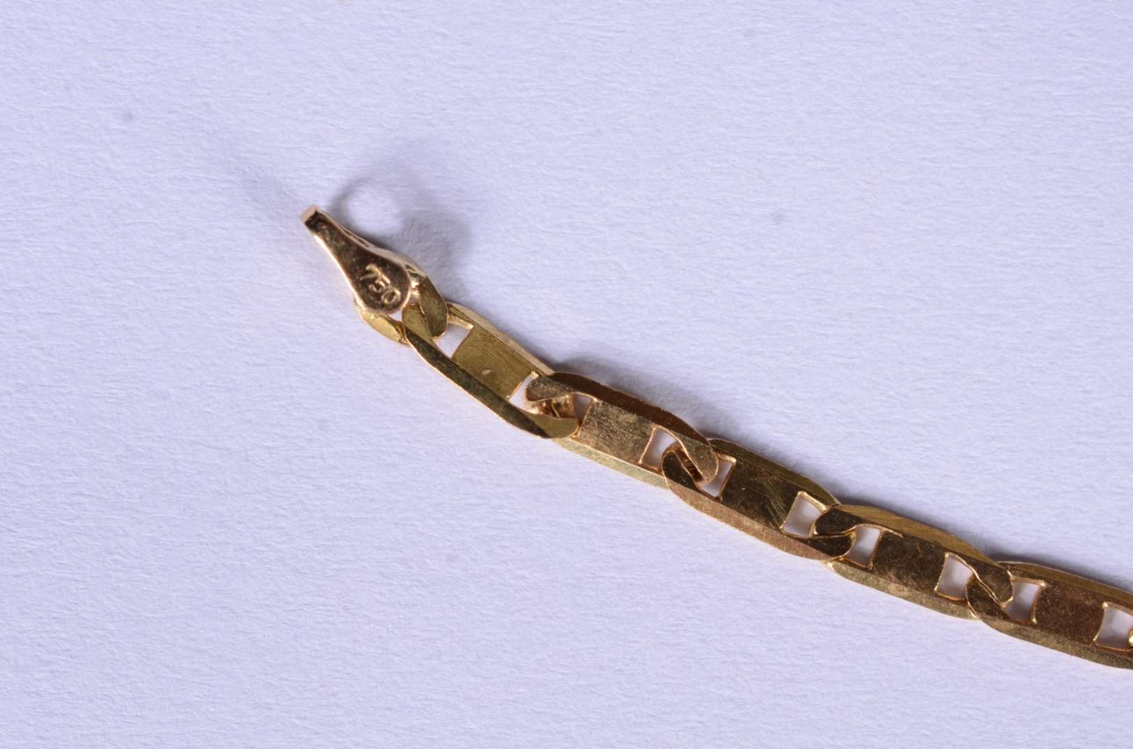 Pequena pulseira de ouro 18 k., elós batidos. (Por motivos de segurança a peça não se encontra na loja).