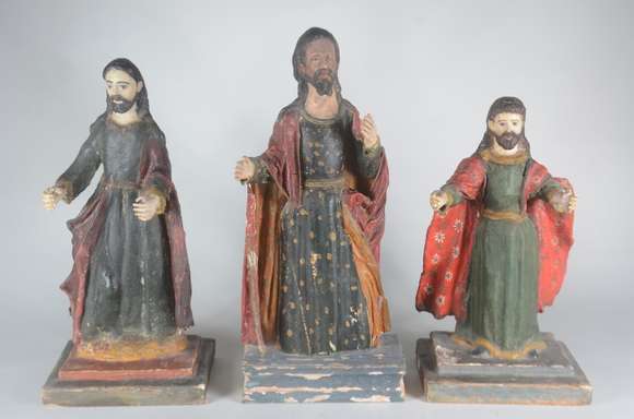 Tres antigas imagens de papier mâché e madeira policromada (desgastes).