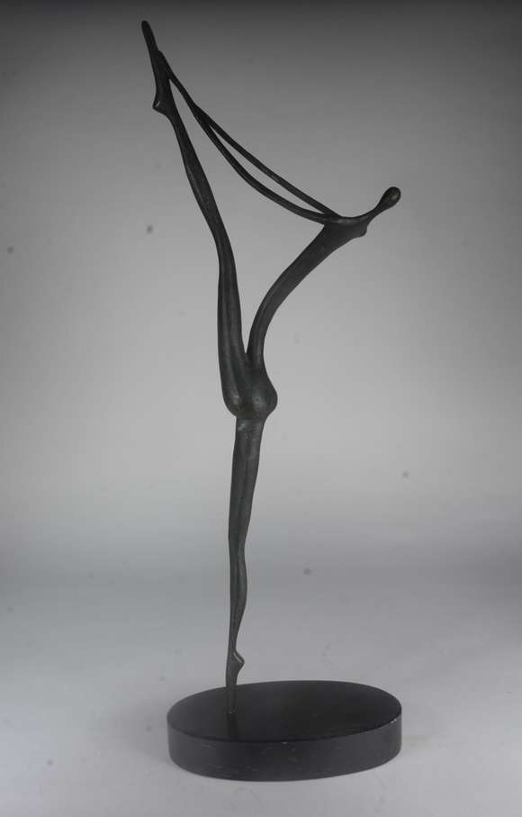 Grupo escultórico de bronze, representando São Jorge flechando o dragão.
