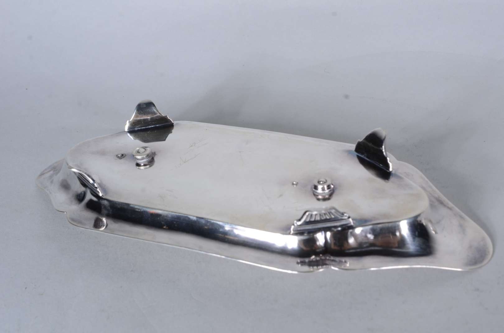 Centro de mesa/cesta de porcelana tcheca Epiag com alça de metal dourado. Com restauro.