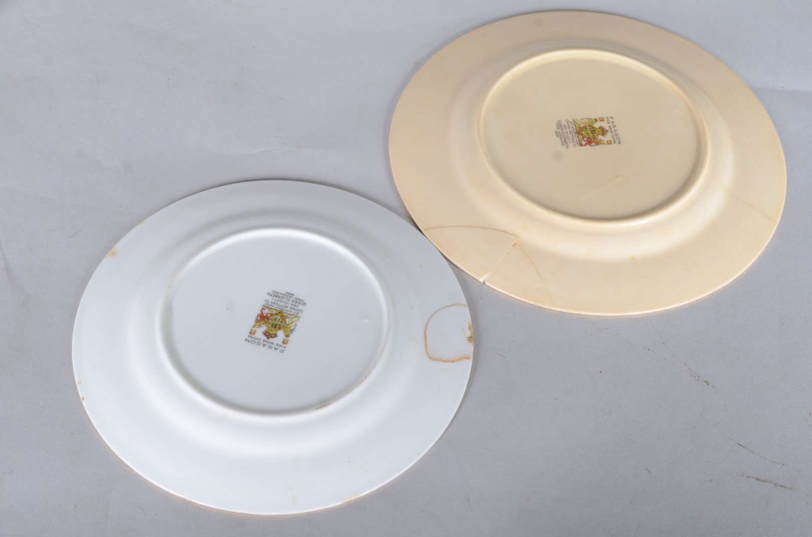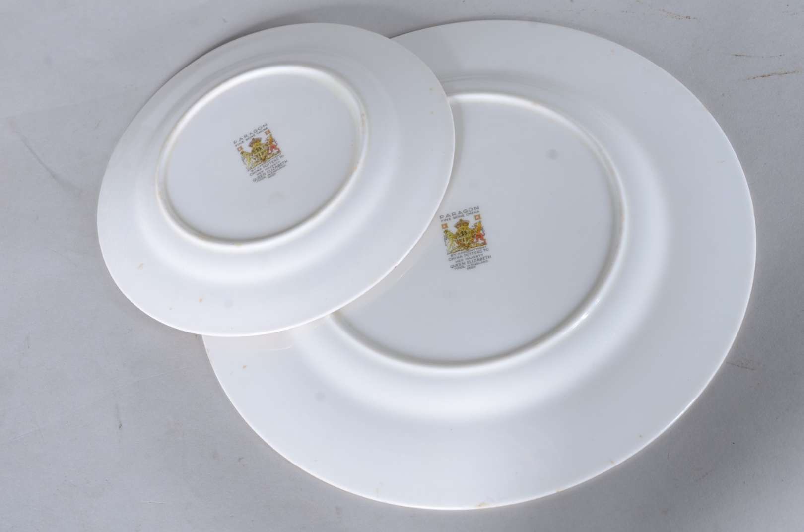 Conjunto com 6 pratos para sobremesa de porcelana France Deposé, fundo branco, bordas recortadas decoradas com realce...