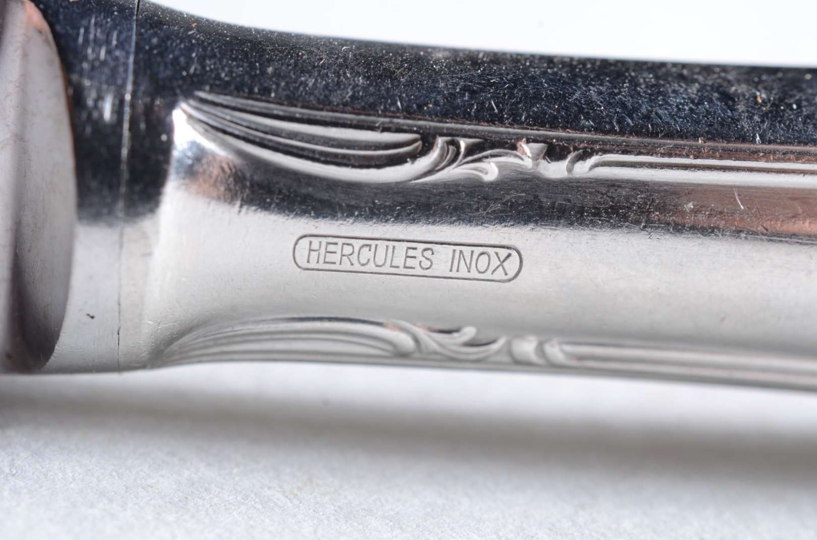 Tinteiro de prata inglesa contrastada com dois recipientes de cristal. Peso da prata: 150 g. (Por motivos de seguranç...