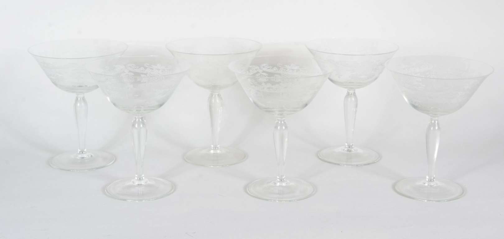 Seis taças de pé alto para vinho em vidro colorido