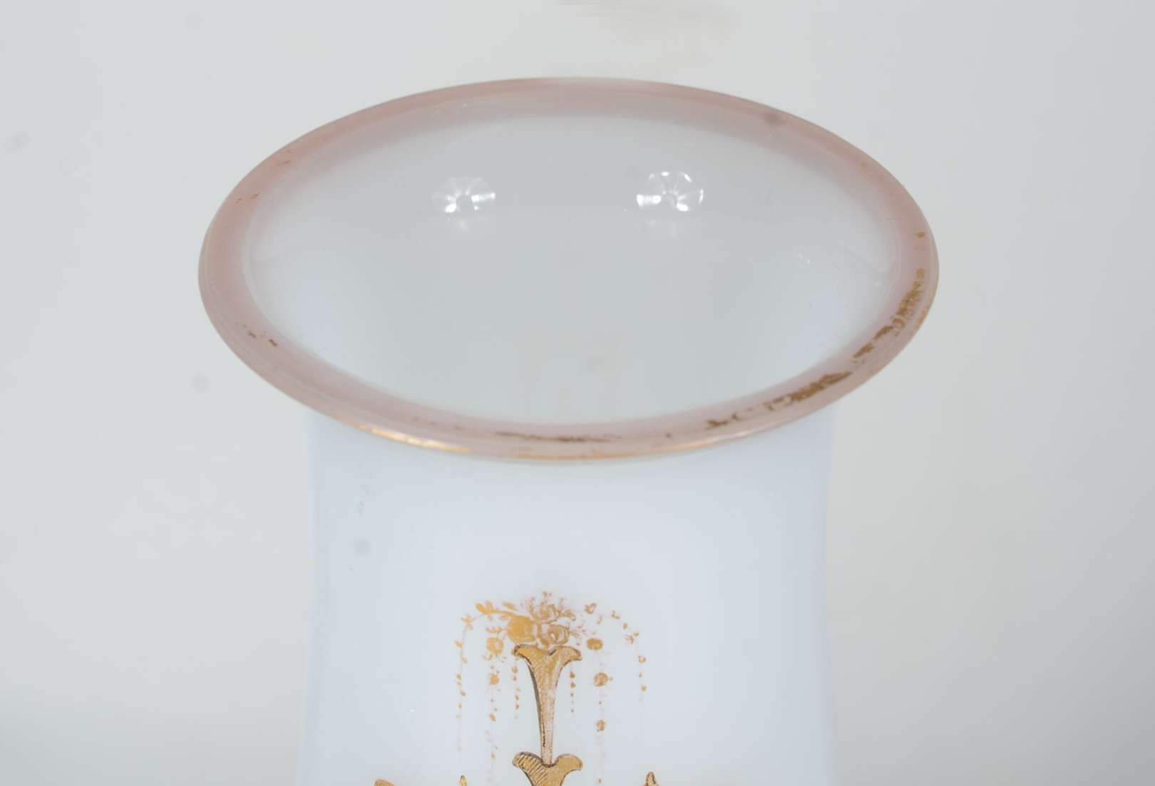 Par de vasos de porcelana, fundo branco com flores em policromia. Um deles com fio de cabelo e rachado.