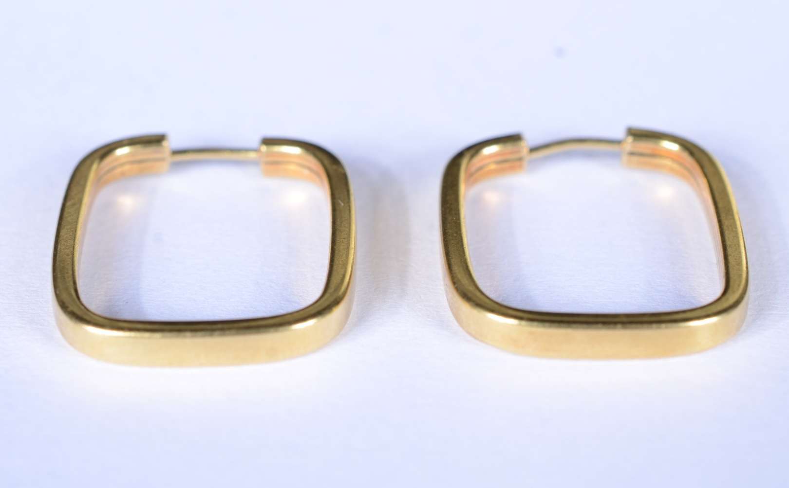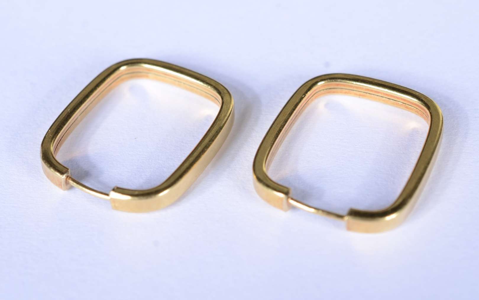 Par de argolas de ouro 18 k., contraste 750. (Por motivos de segurança a peça não se encontra na loja).