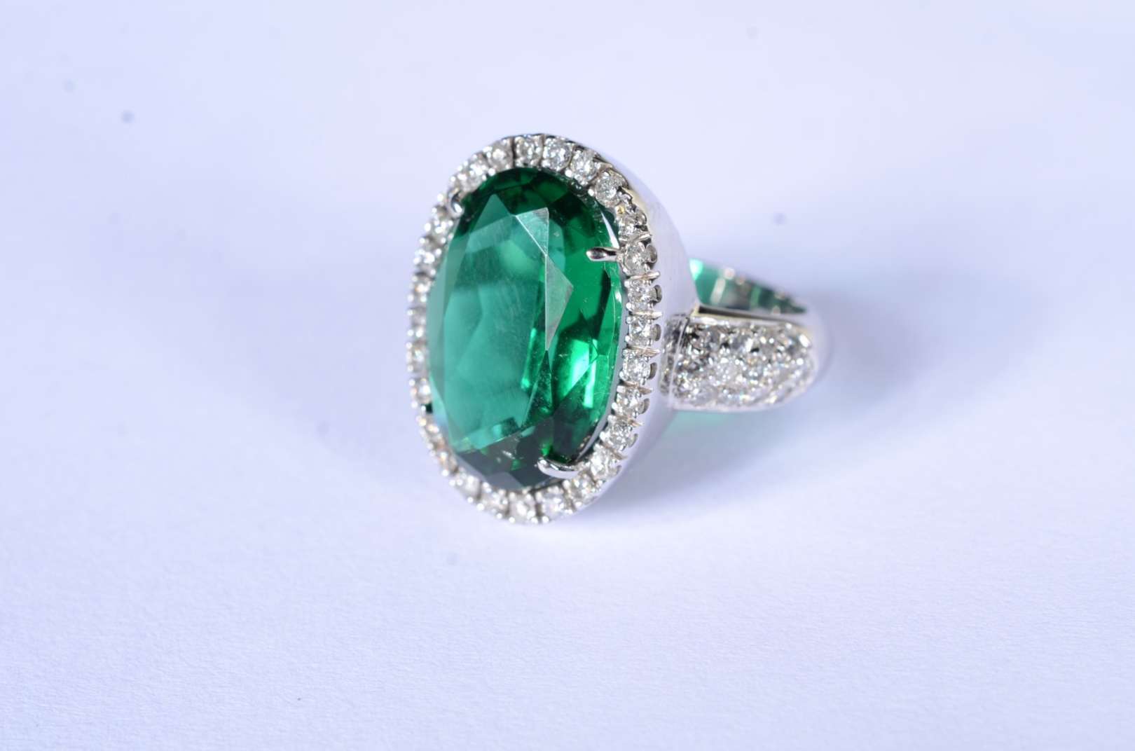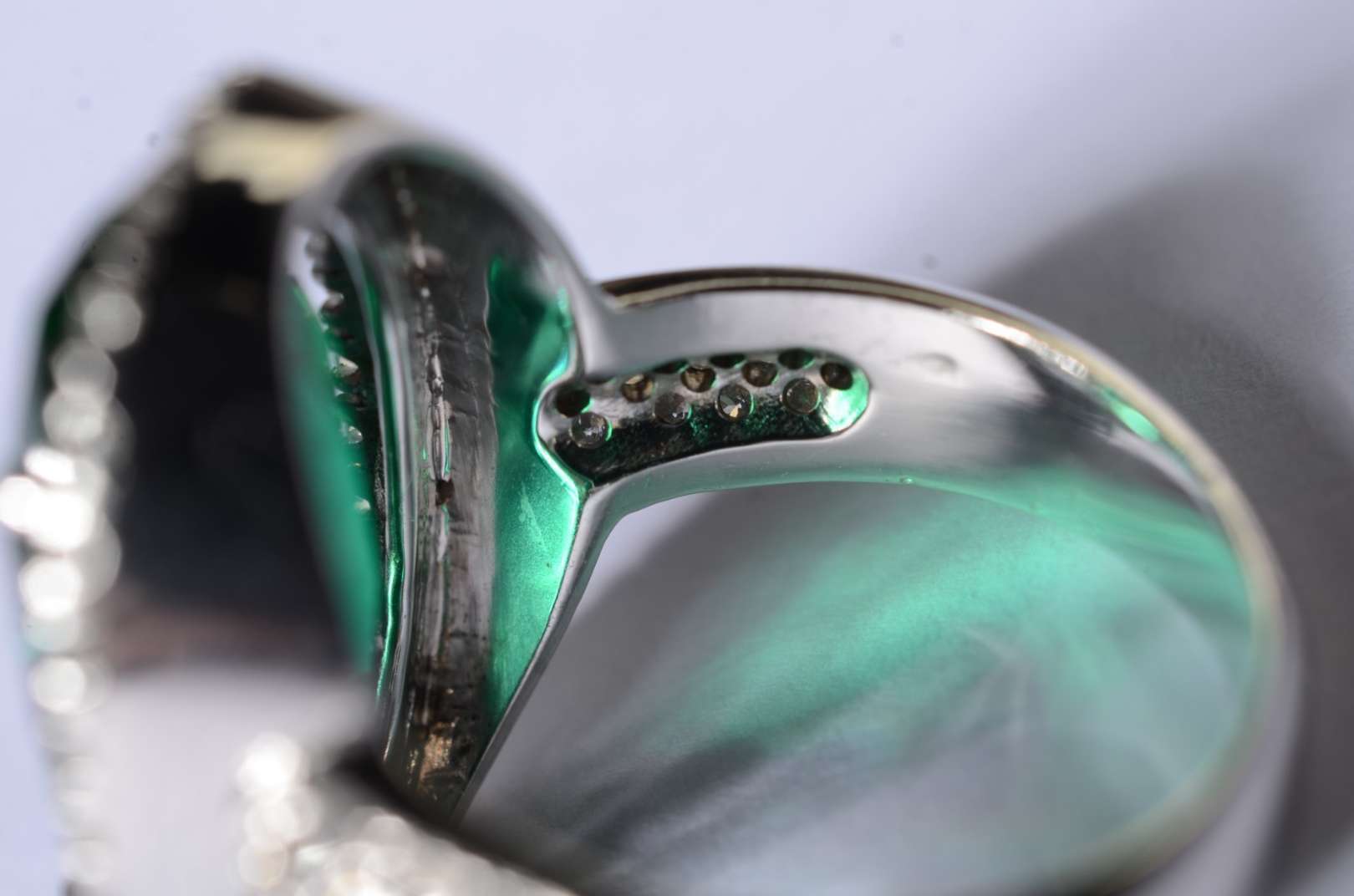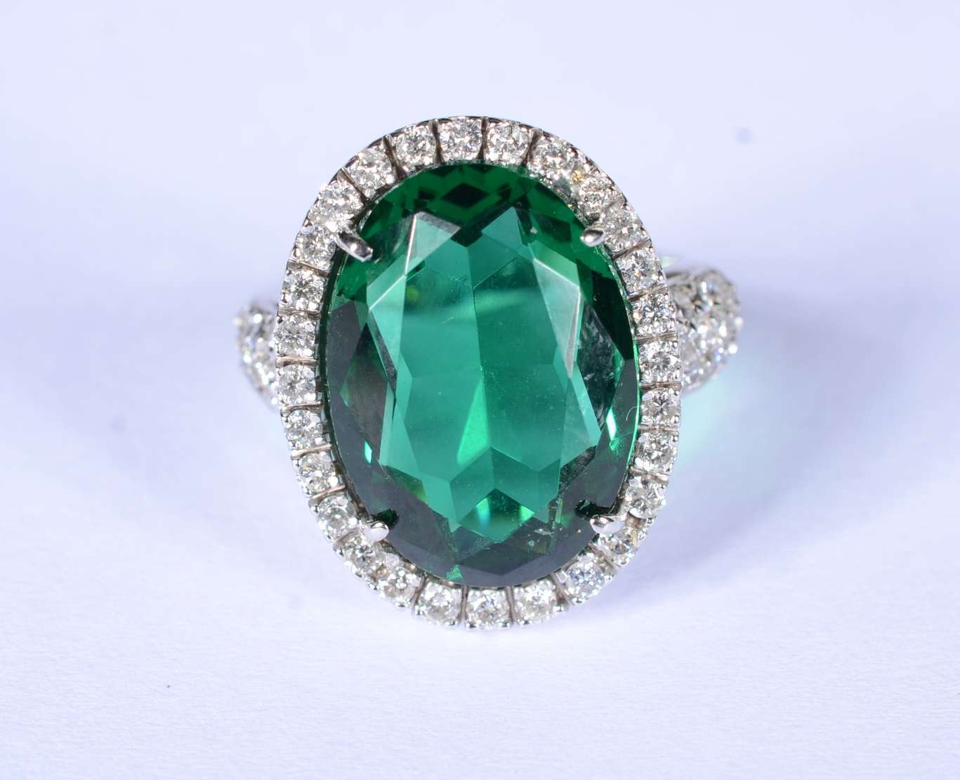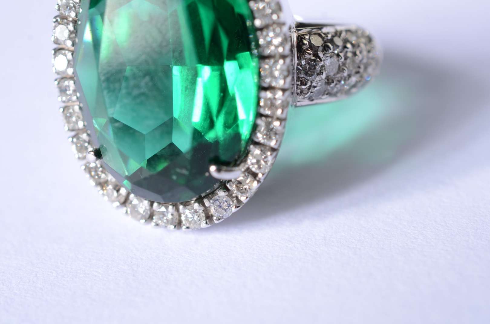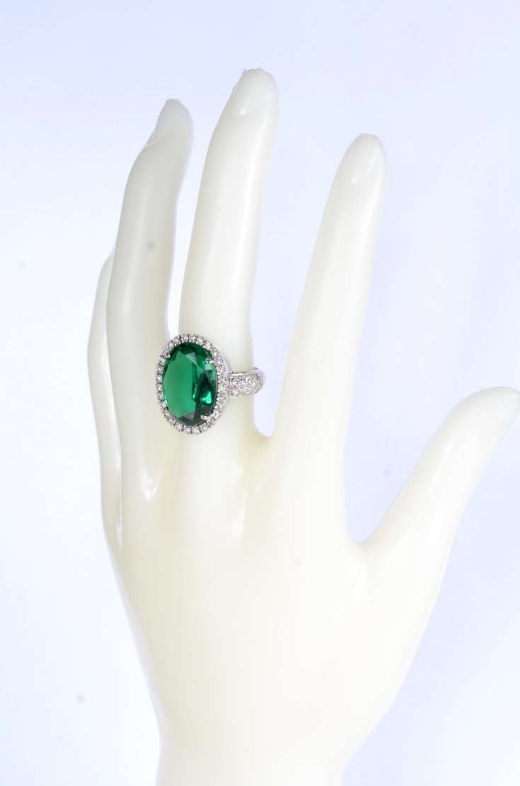 Anel de ouro branco feitio chuveiro cravejado com 7 brilhantes, aro 14. (Por motivos de segurança a peça não se enco...
