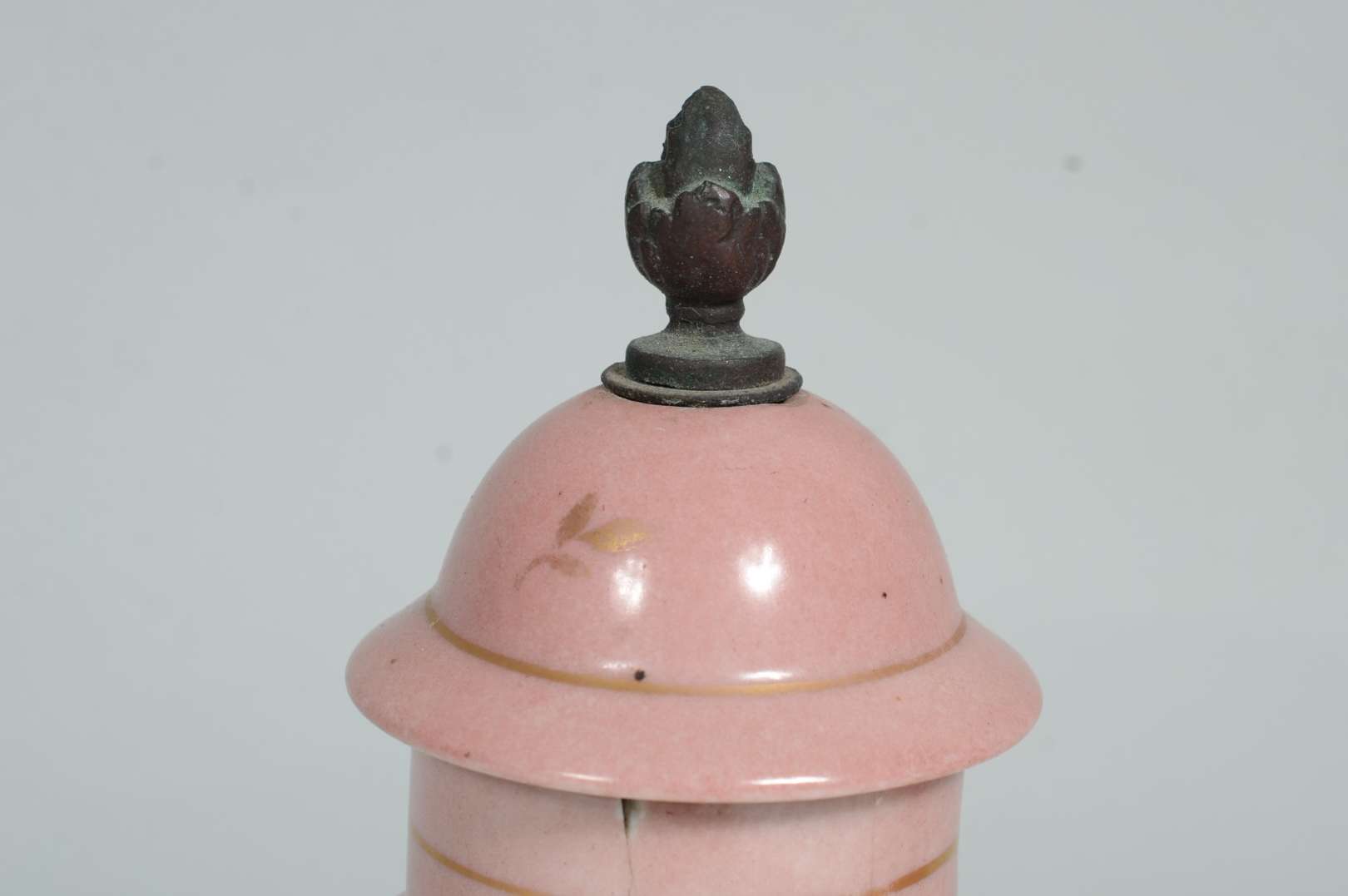 Ânfora de porcelana francesa, medalhão em reserva floral com guirlandas em policromia sobre fundo azul celeste e real...