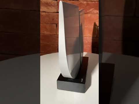 Escultura de avião de metal dourado, base de madeira. Elise quebrada e pequenos desgastes.