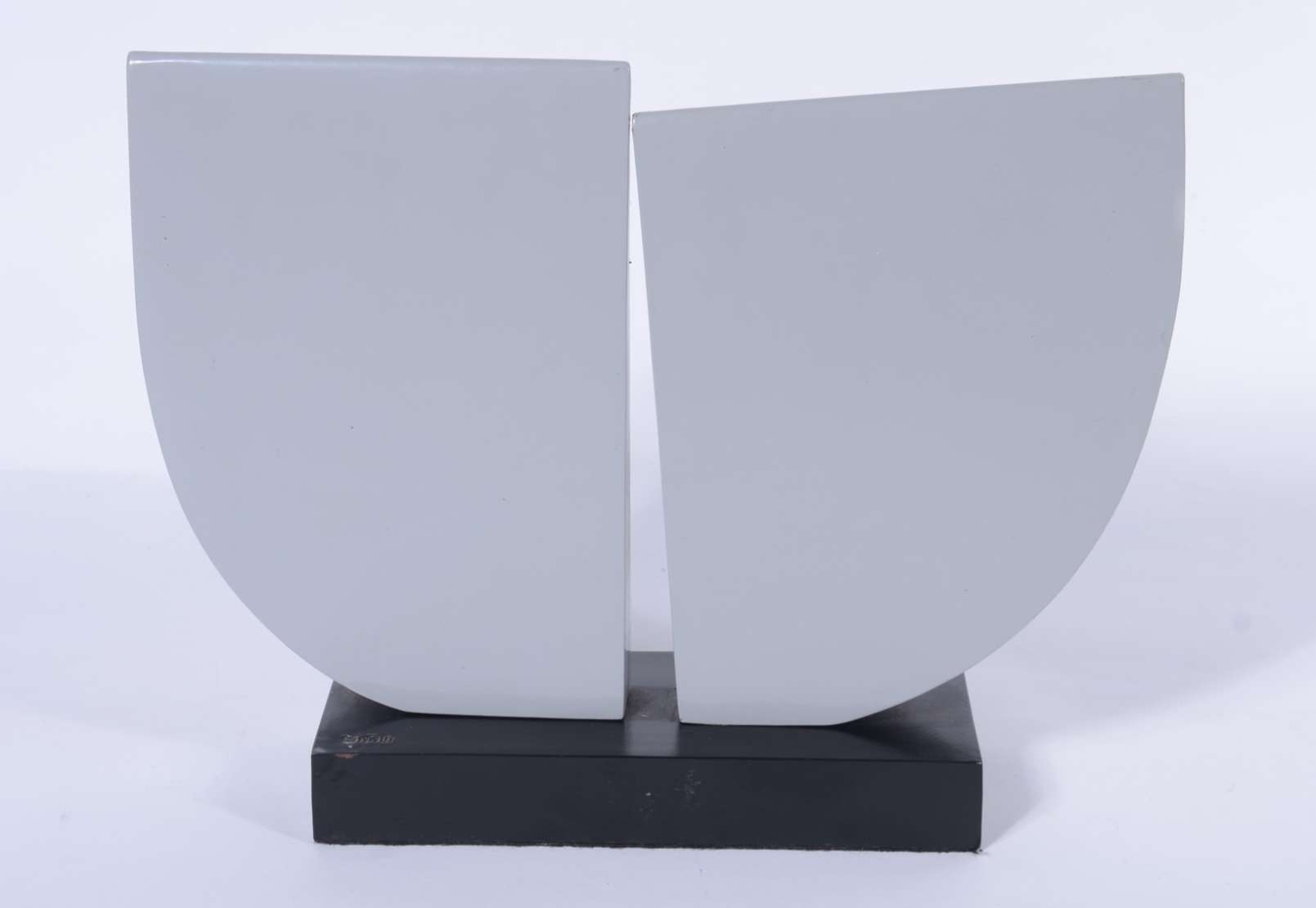 Pequena escultura de bronze representando "casal se abraçando", assinada Battini.