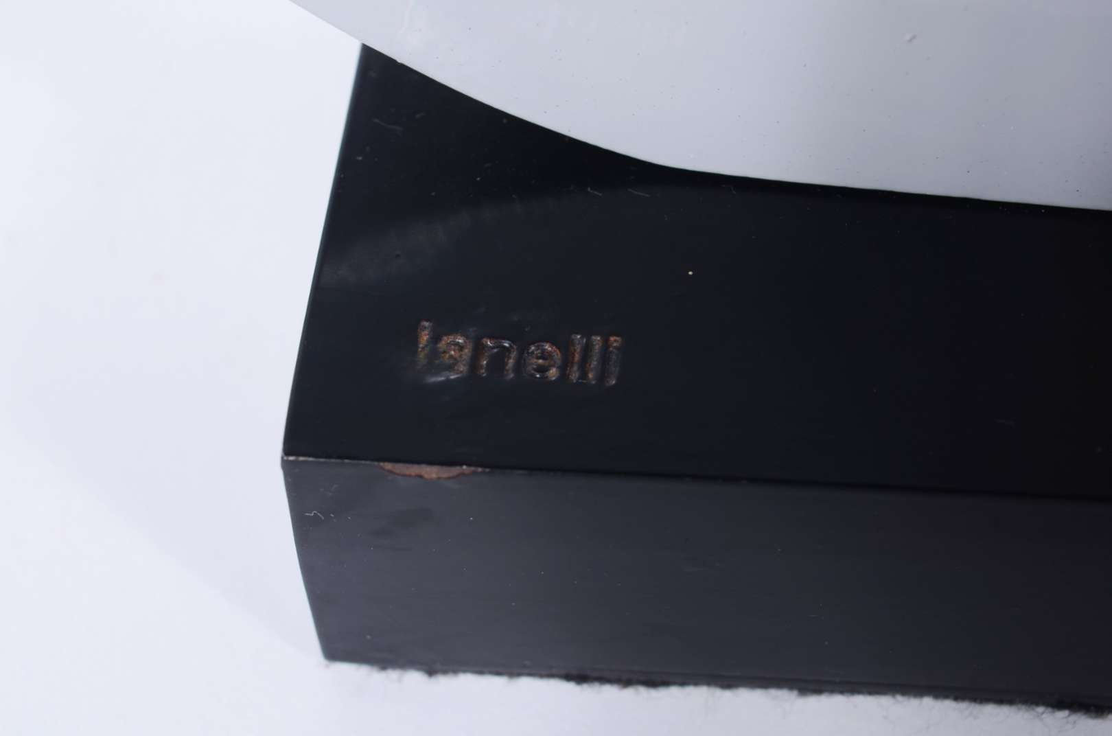 Dois abatjoures, sendo um deles em cerâmica com figuras em relevo e policromia (quebrado na base); e outro menor de p...