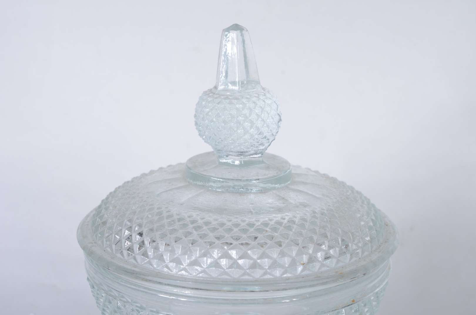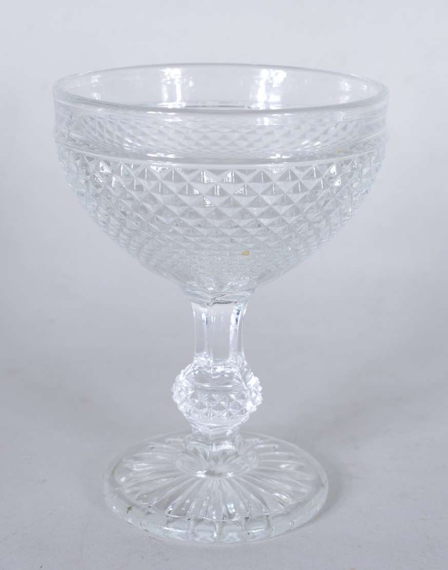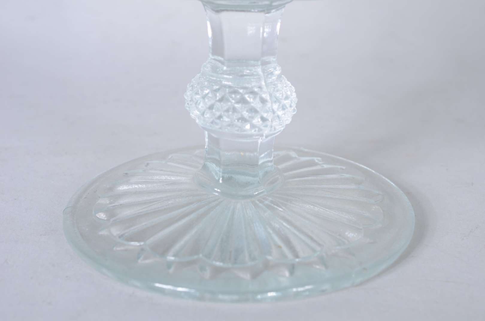 Fruteira de cristal verde francês estilo Art Deco com desenhos geométricos foscos.