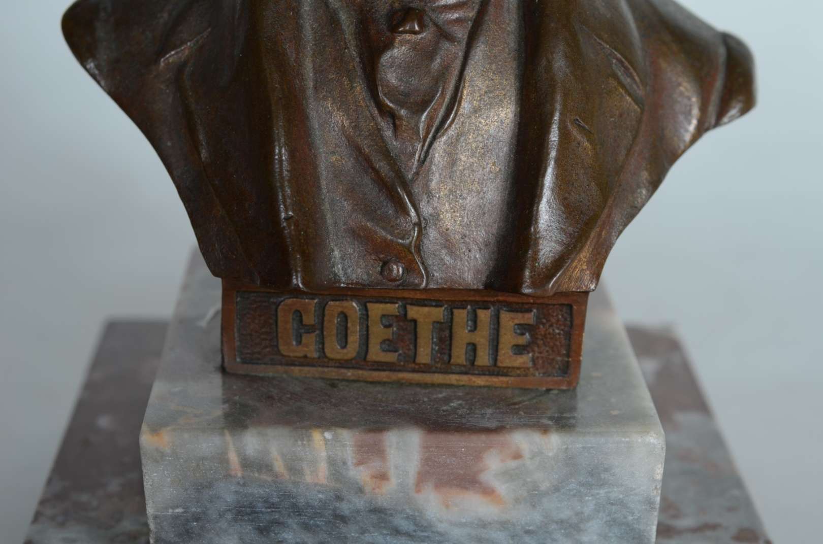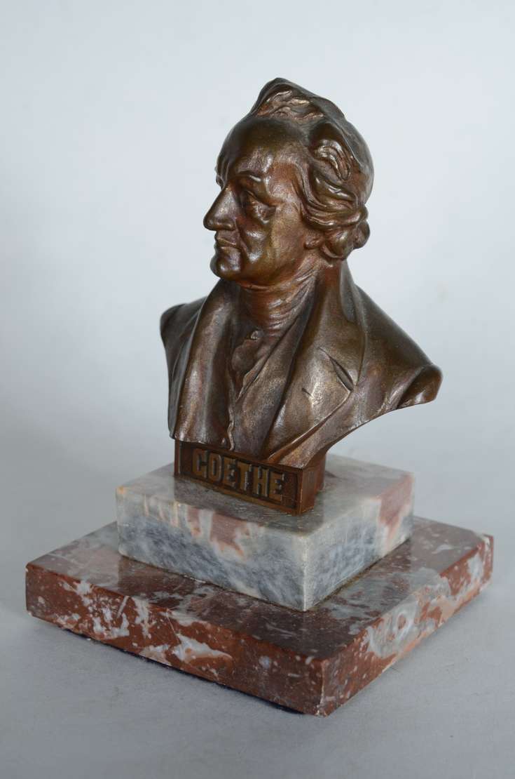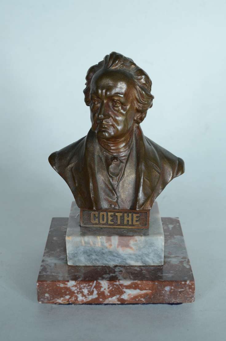 Busto de bronze representando Goethe, base de mármore, assinado H. Muller.