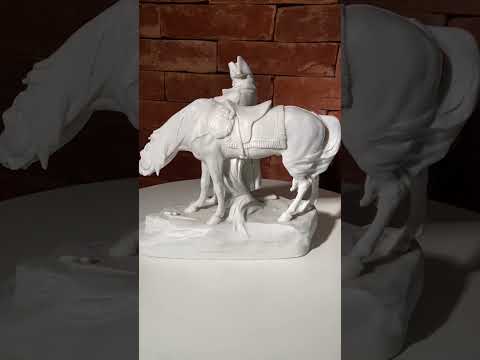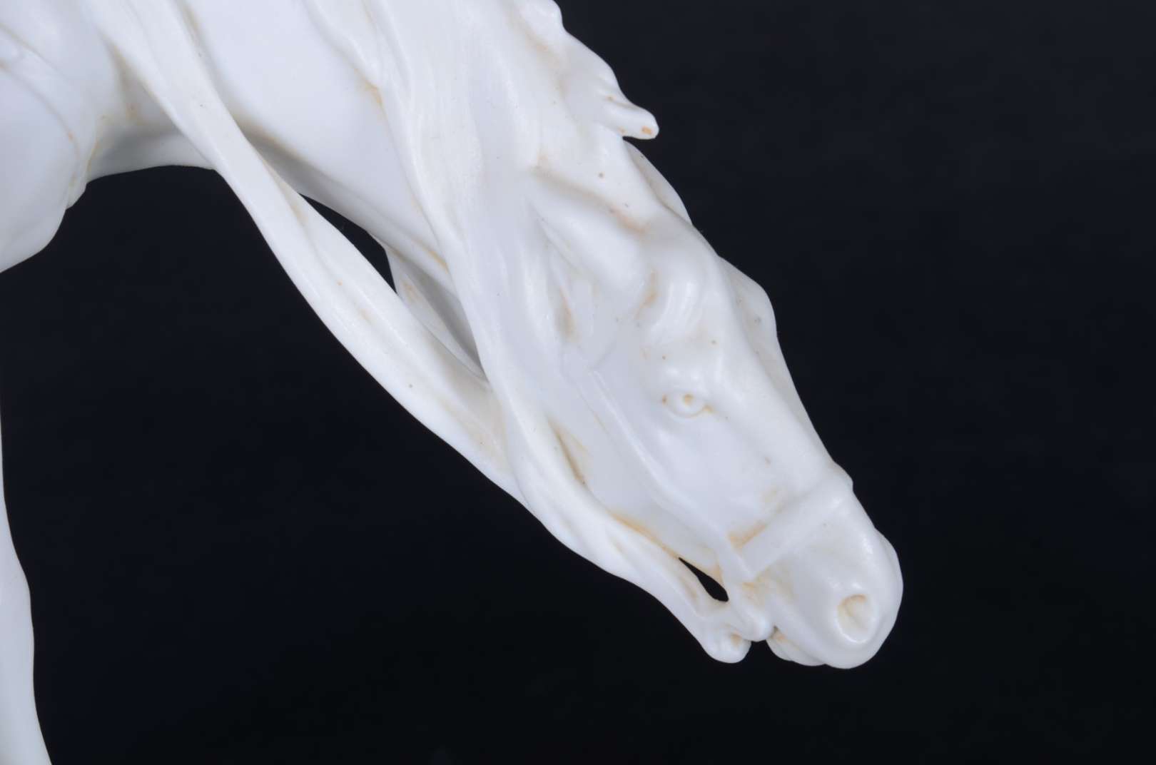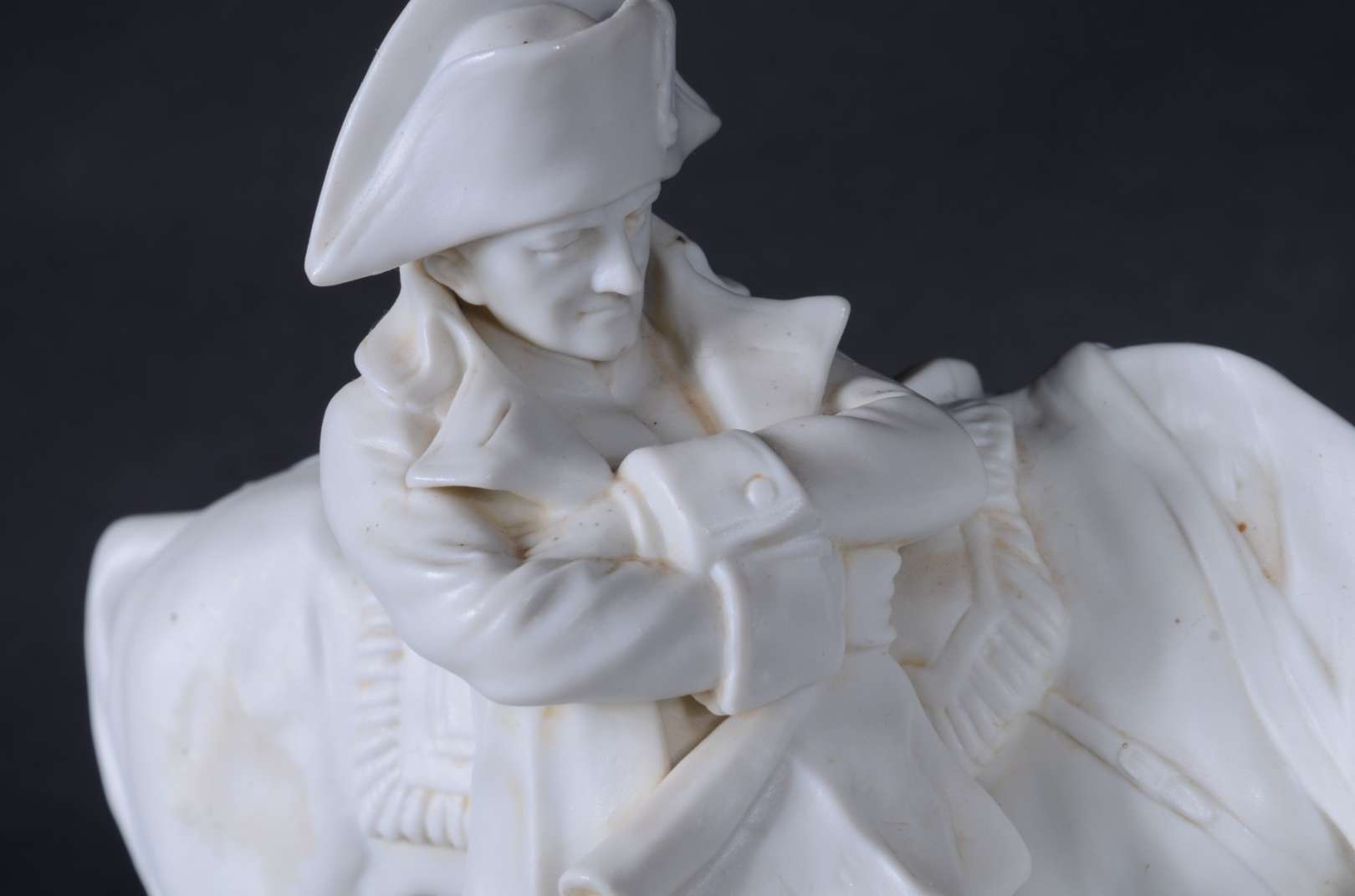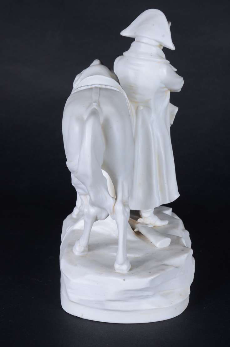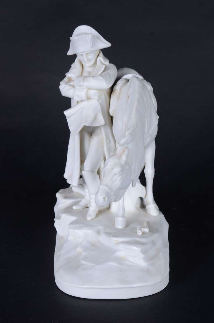 Grupo escultórico de biscuit representando Napoleão ao lado do cavalo.