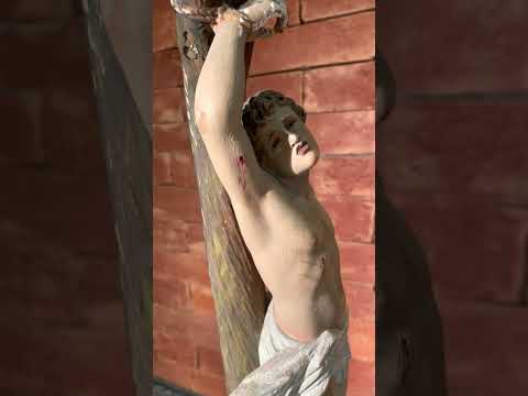São João Batista - Antiga Imagem de madeira policromada e dourada. Faltando pequenas partes e desgastes.