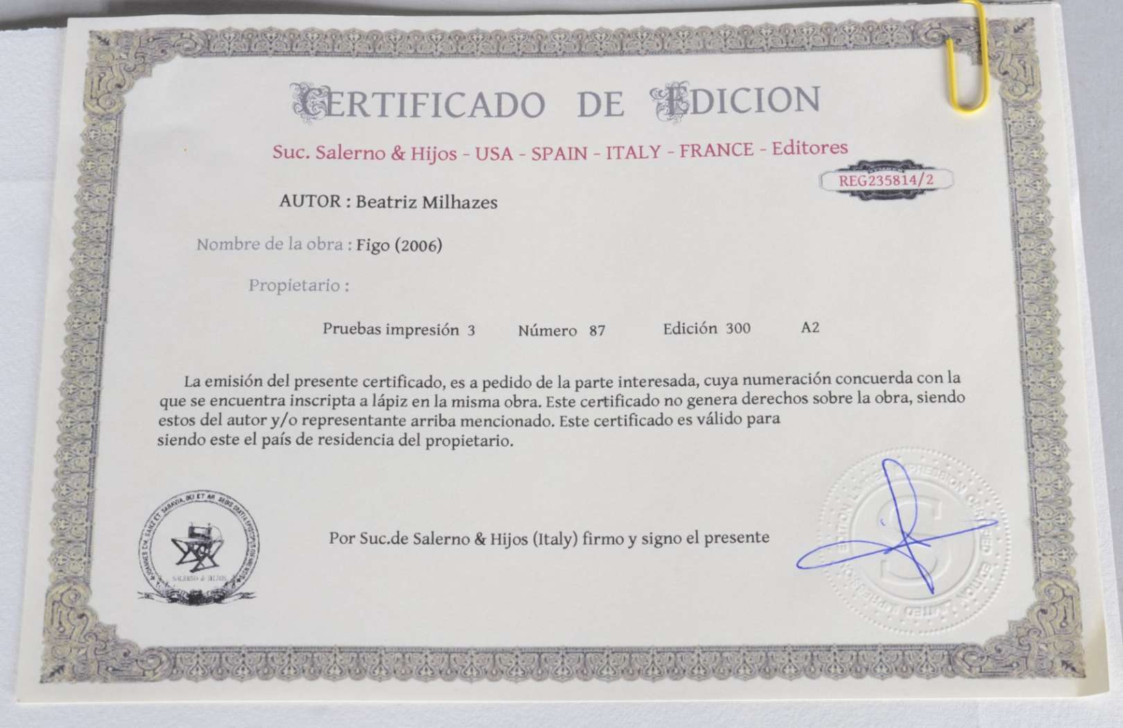 Gravura em metal - P.A (Prova do Artista) - III/X.