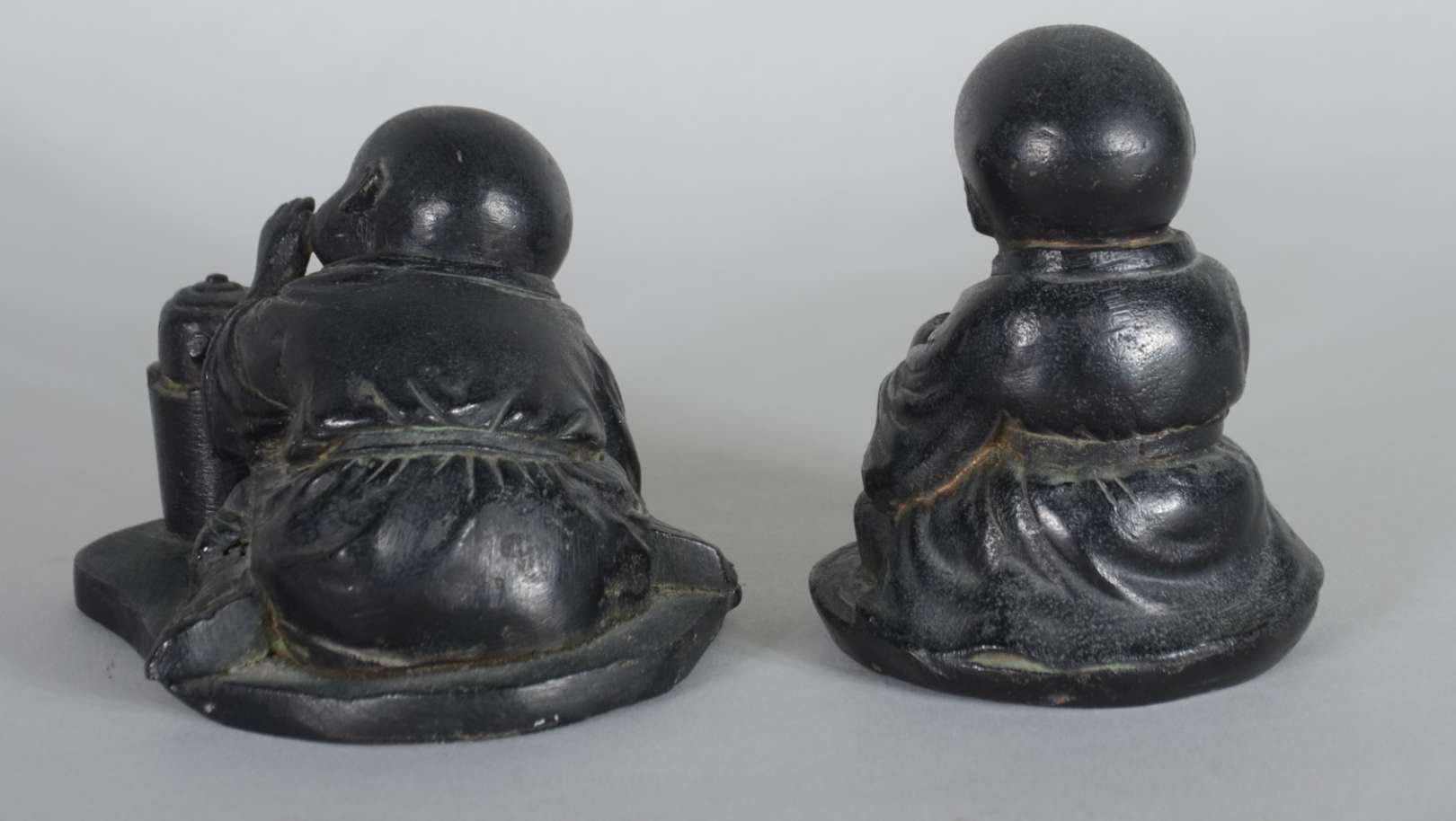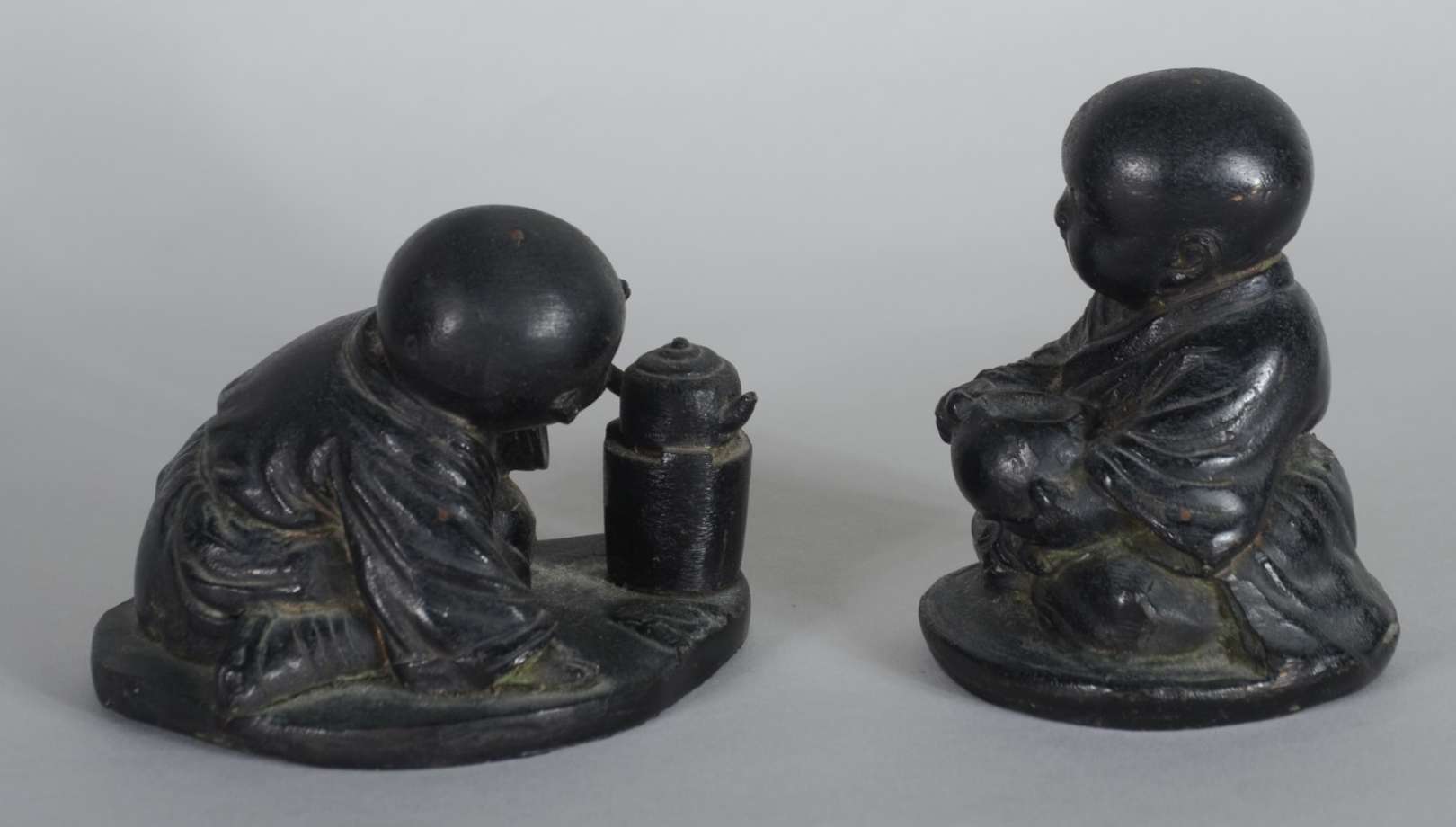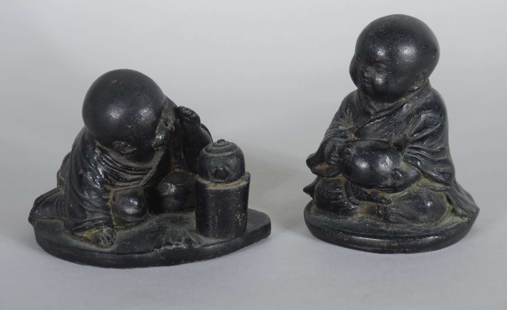 Par de figuras de metal representando crianças orientais. Assinados na base.