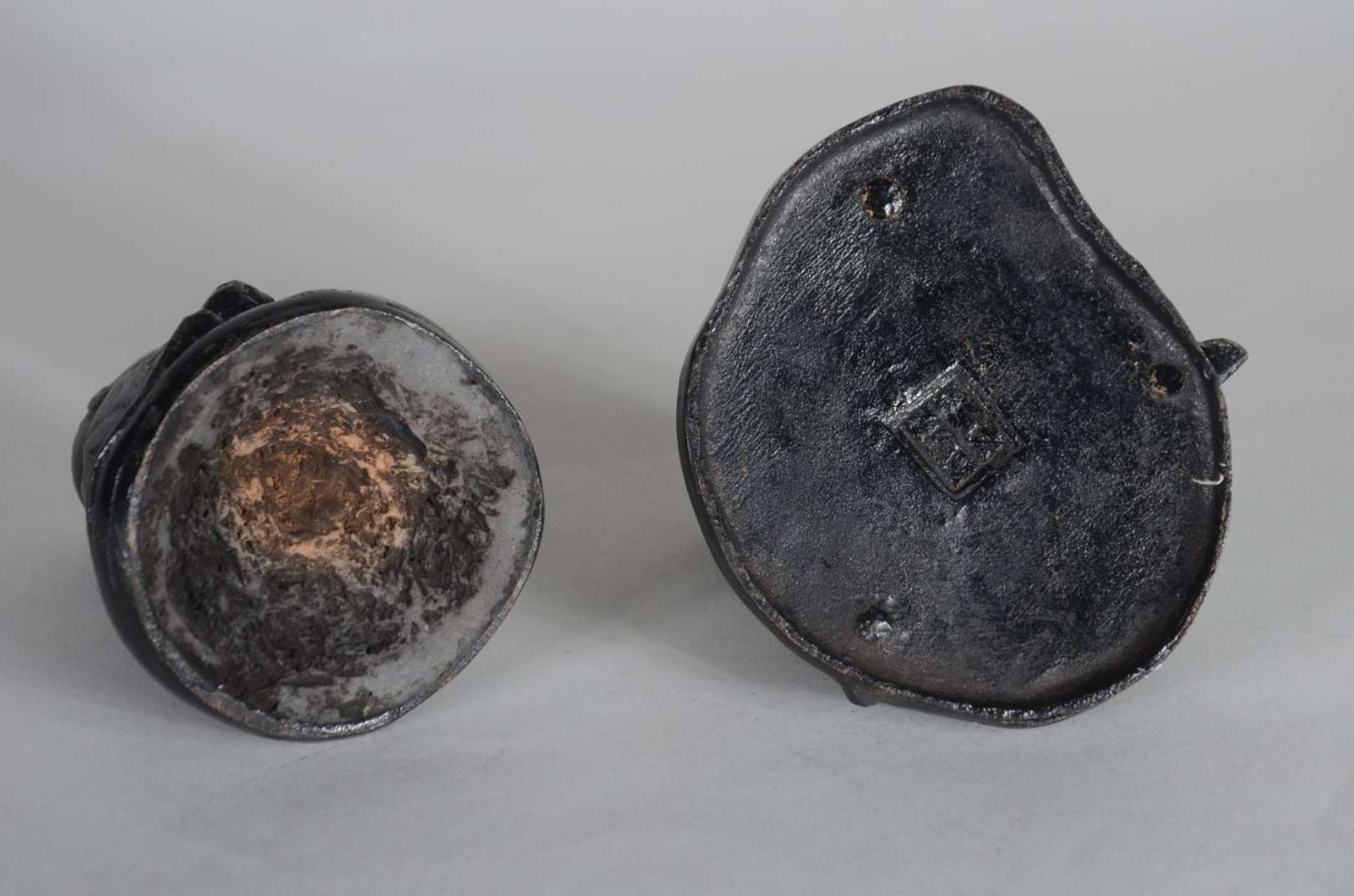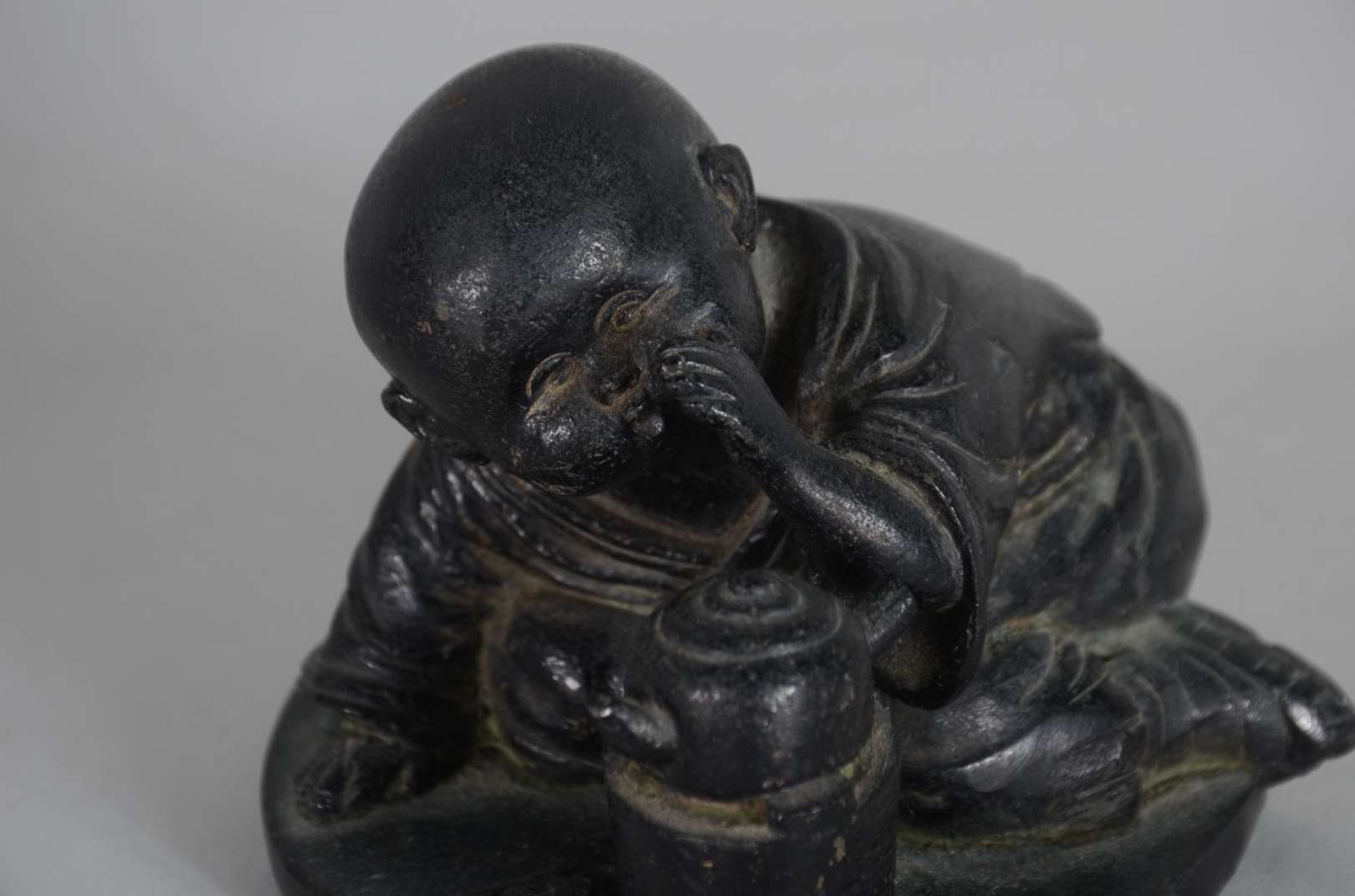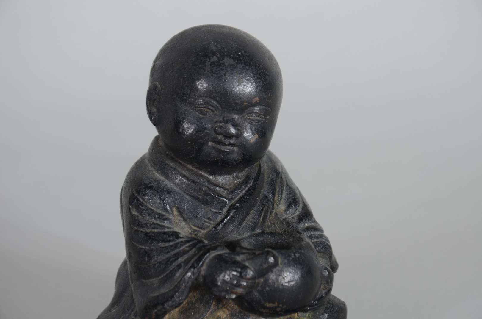 Par de figuras de metal representando crianças orientais. Assinados na base.