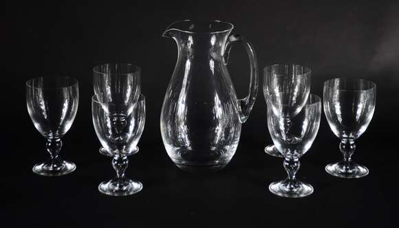 Serviço de cristal, lapidação "bico de jaca", composto de: 18 taças para vinho tinto, 13 para vinho branco e 15 para ...