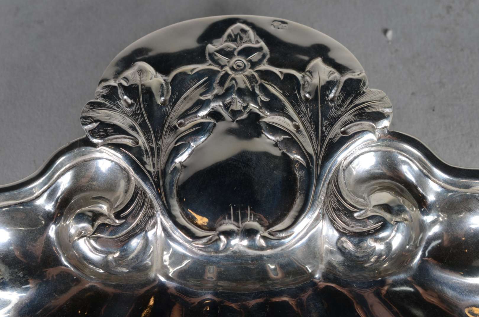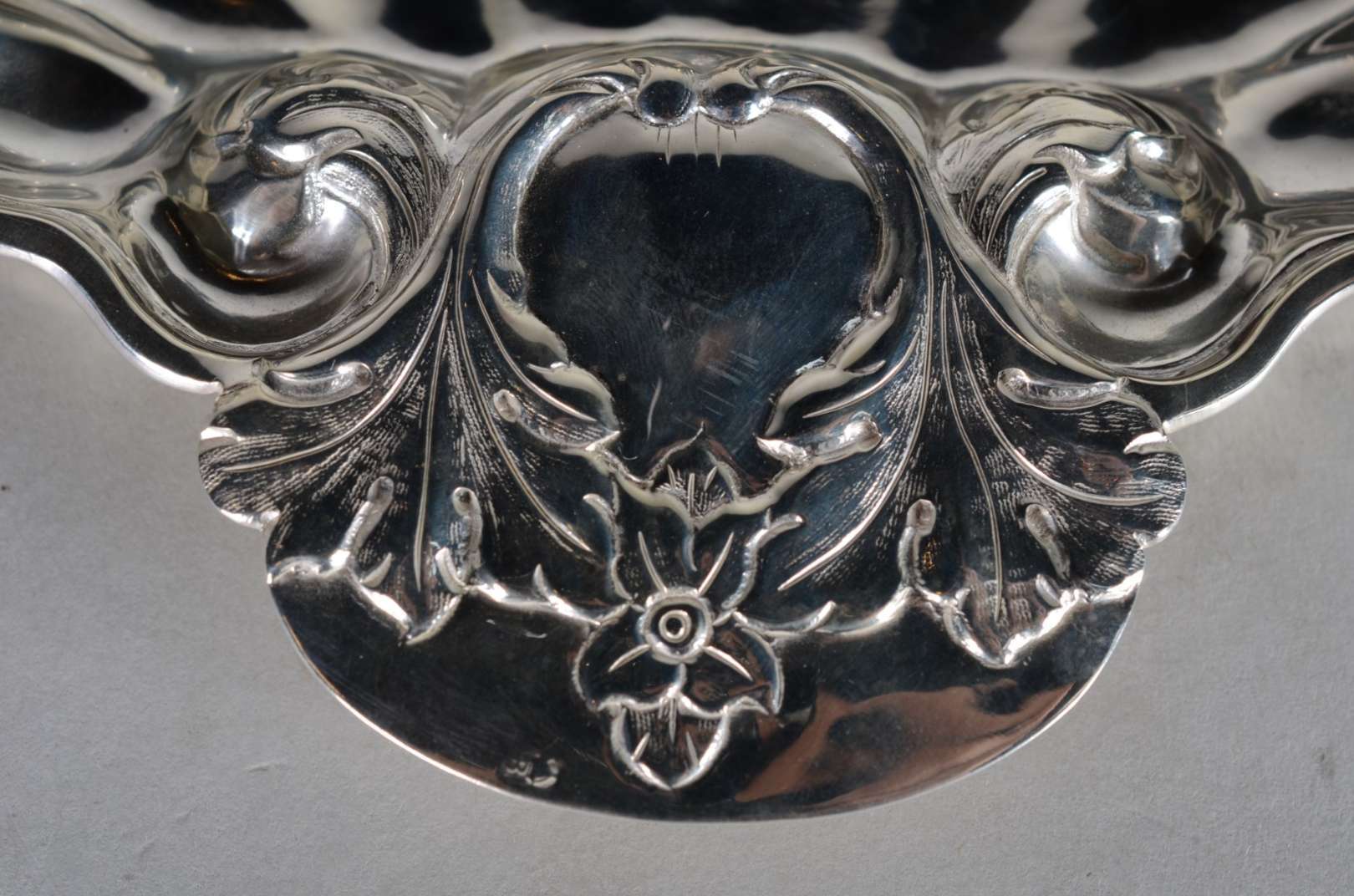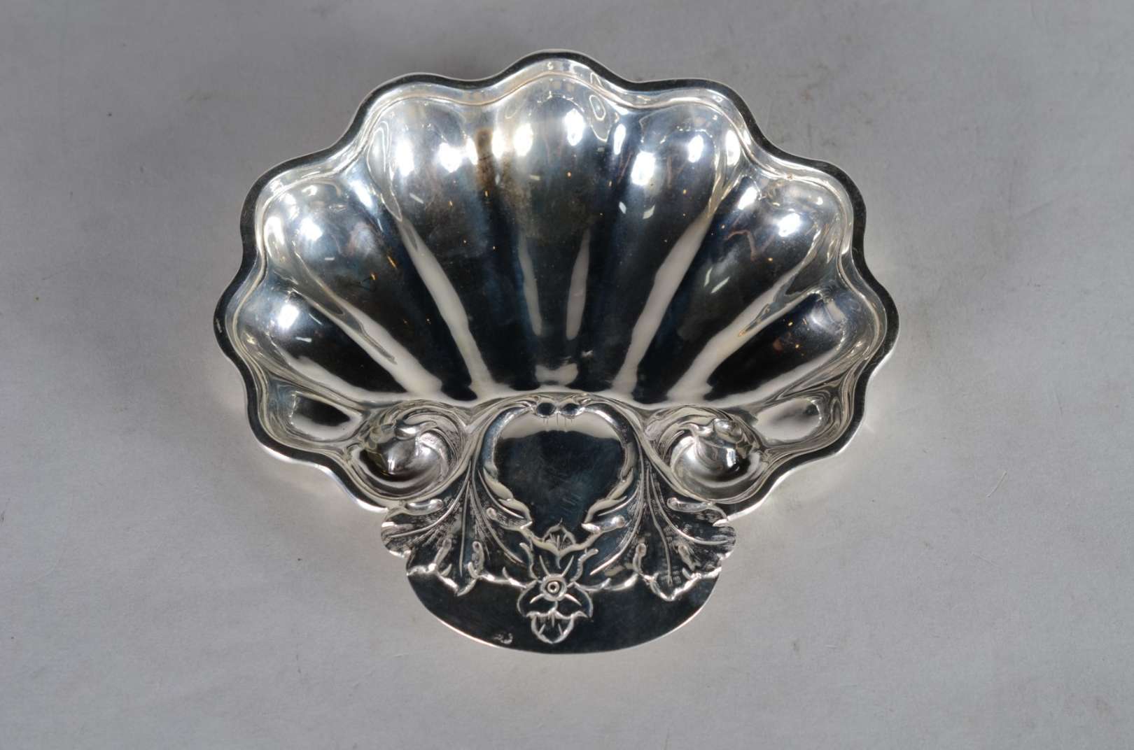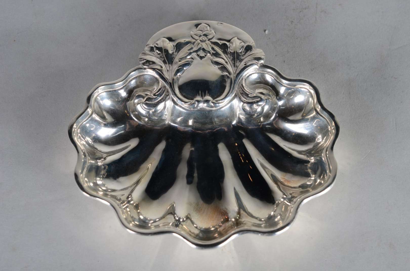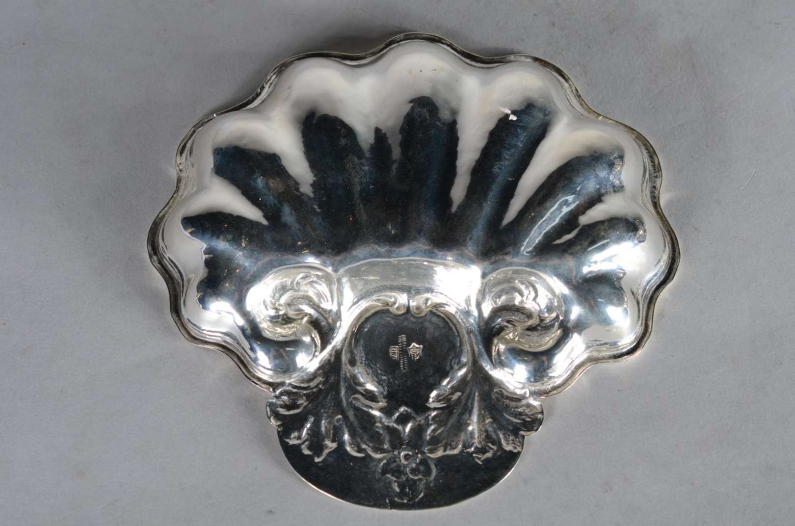 Cinco peças diversas de metal prateado, sendo: dois porta petiscos com interior em vermeil; bowl com borda recortada ...