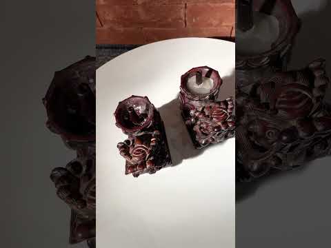 Duas estatuetas de metal representando codornas.