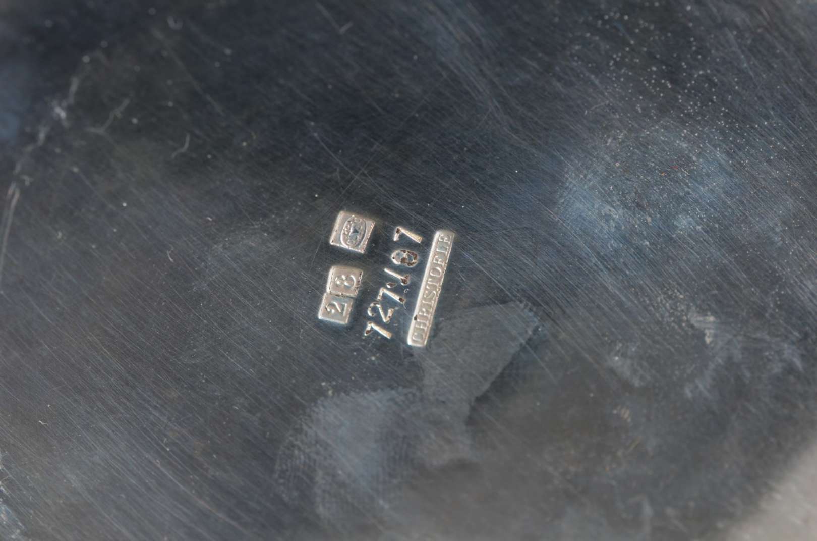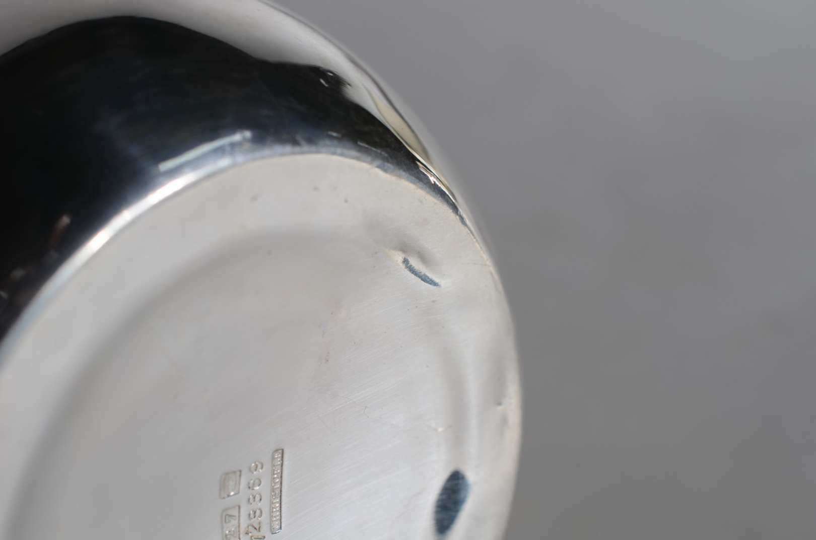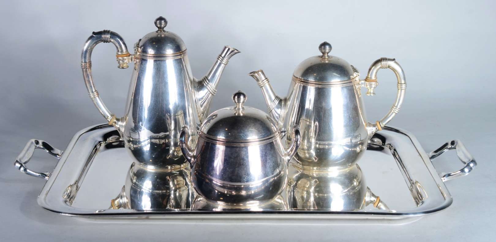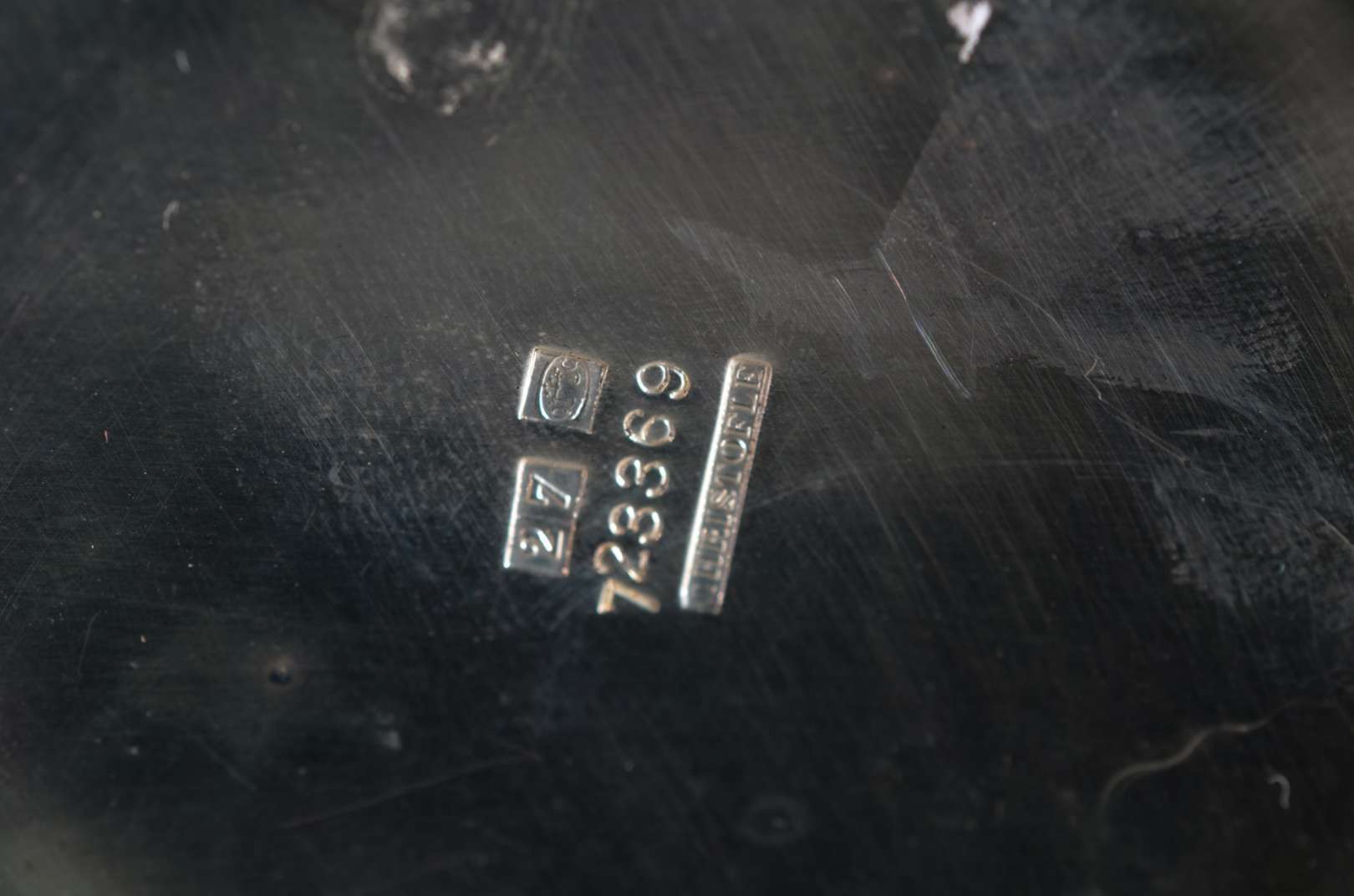 Bule de prata inglesa contrastada e cinzelada com elementos geométricos. Peso da prata: 830 g. (Por motivos de segura...