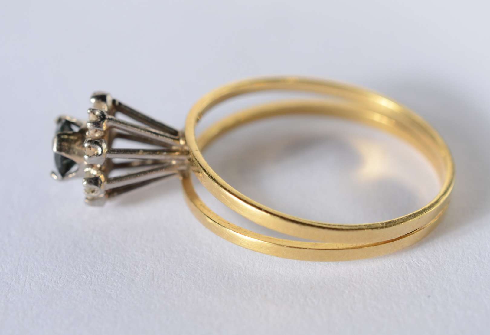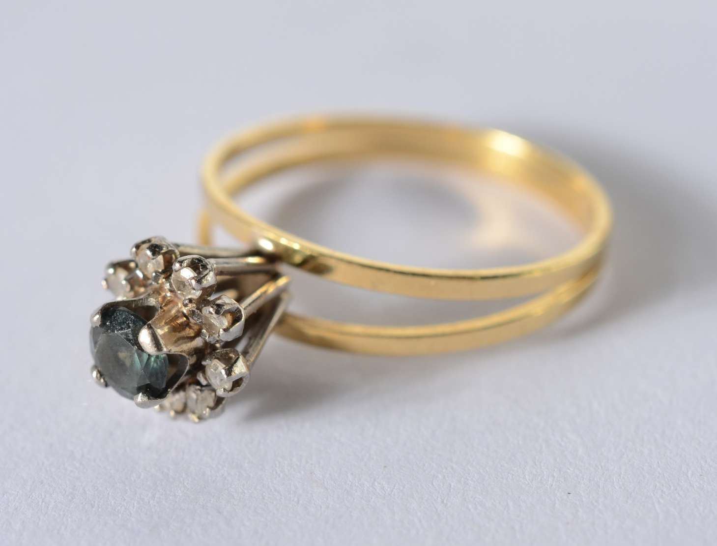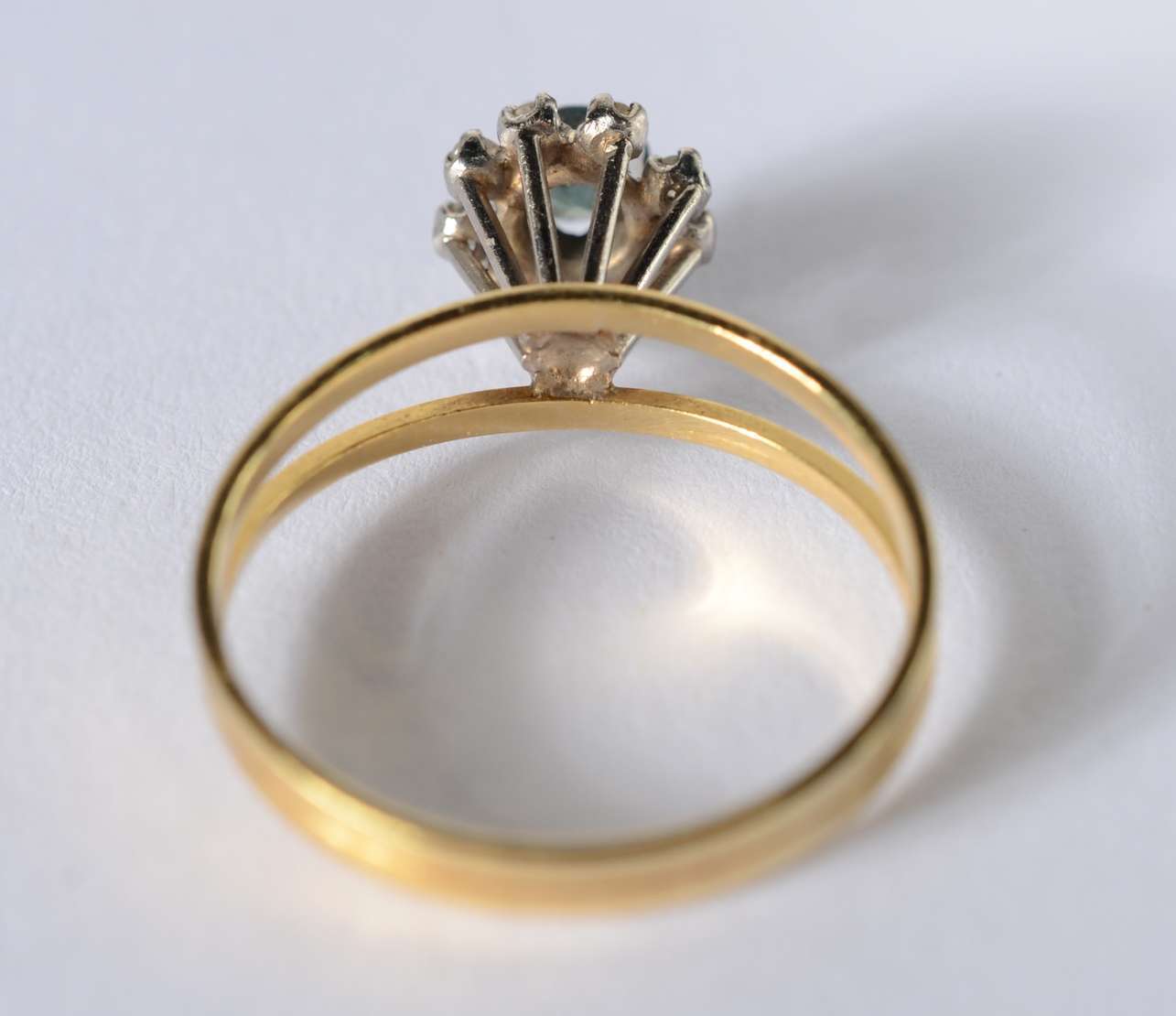 Anel de ouro 18 k., na forma de ramo cravejado com brilhantes e safiras, aro 17. (Por motivos de segurança a peça não...