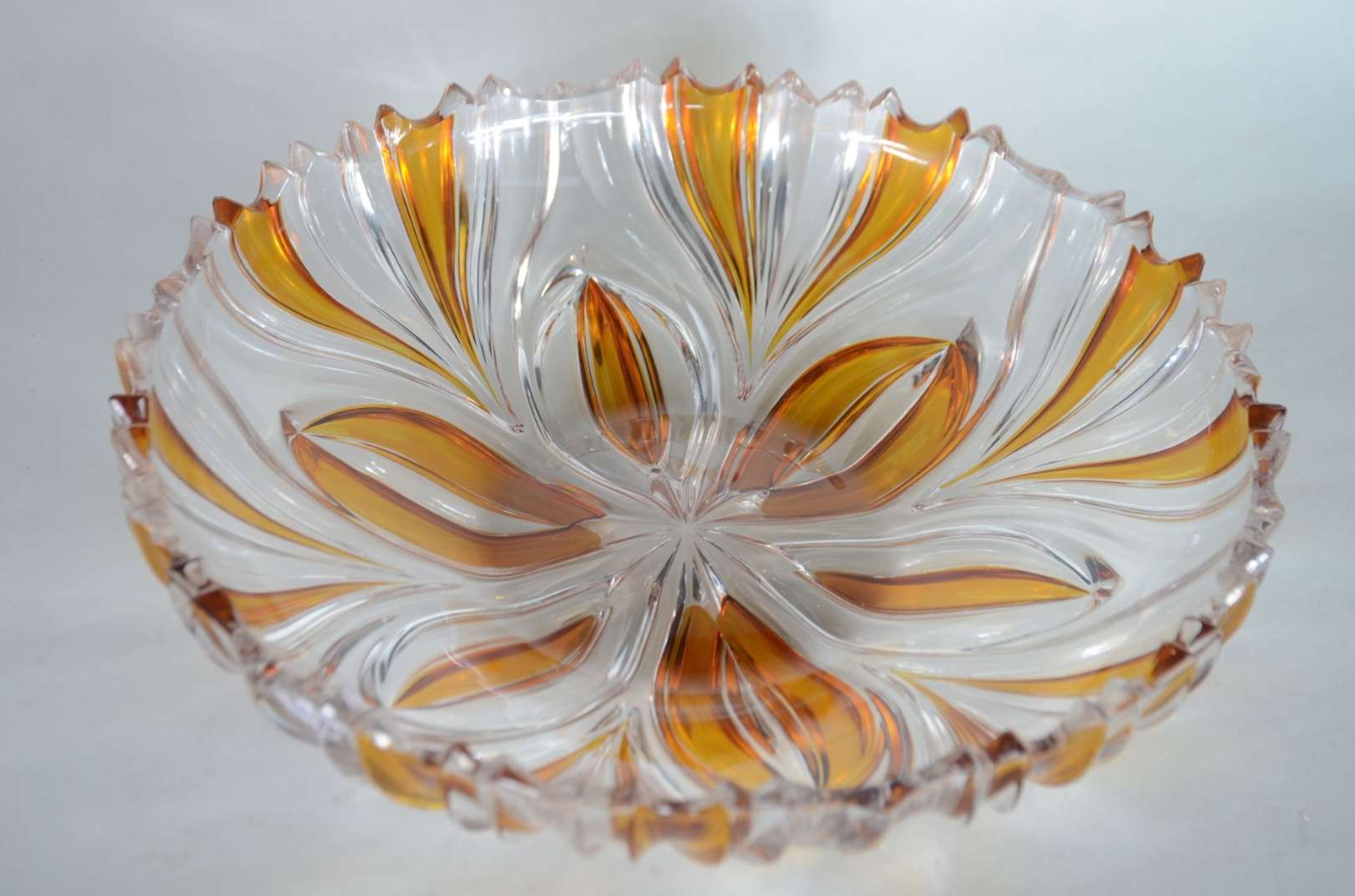 Grande floreira de cristal tcheco lapidado.