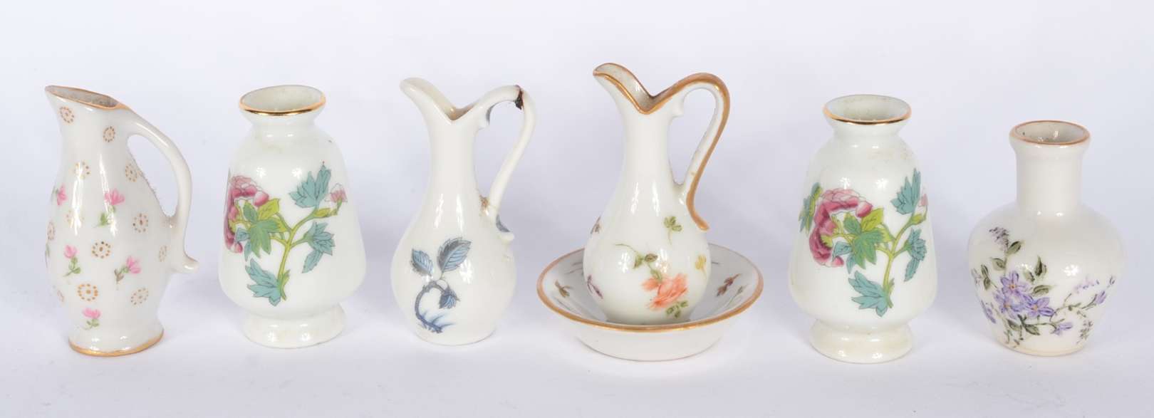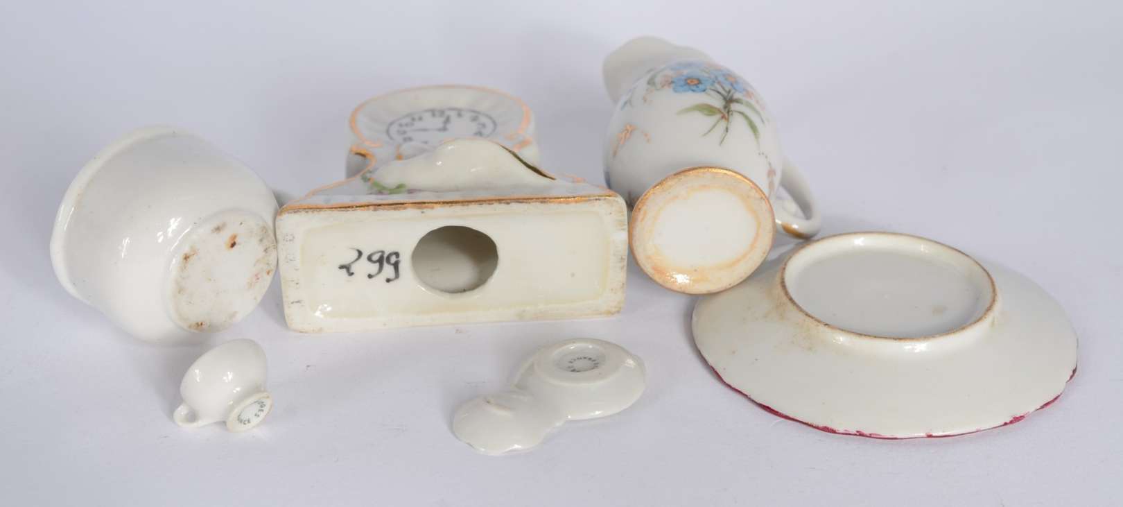 Diversas peças de marfim, sendo: caixa (tampa solta); 2 dedais, caixa e porta agulha.