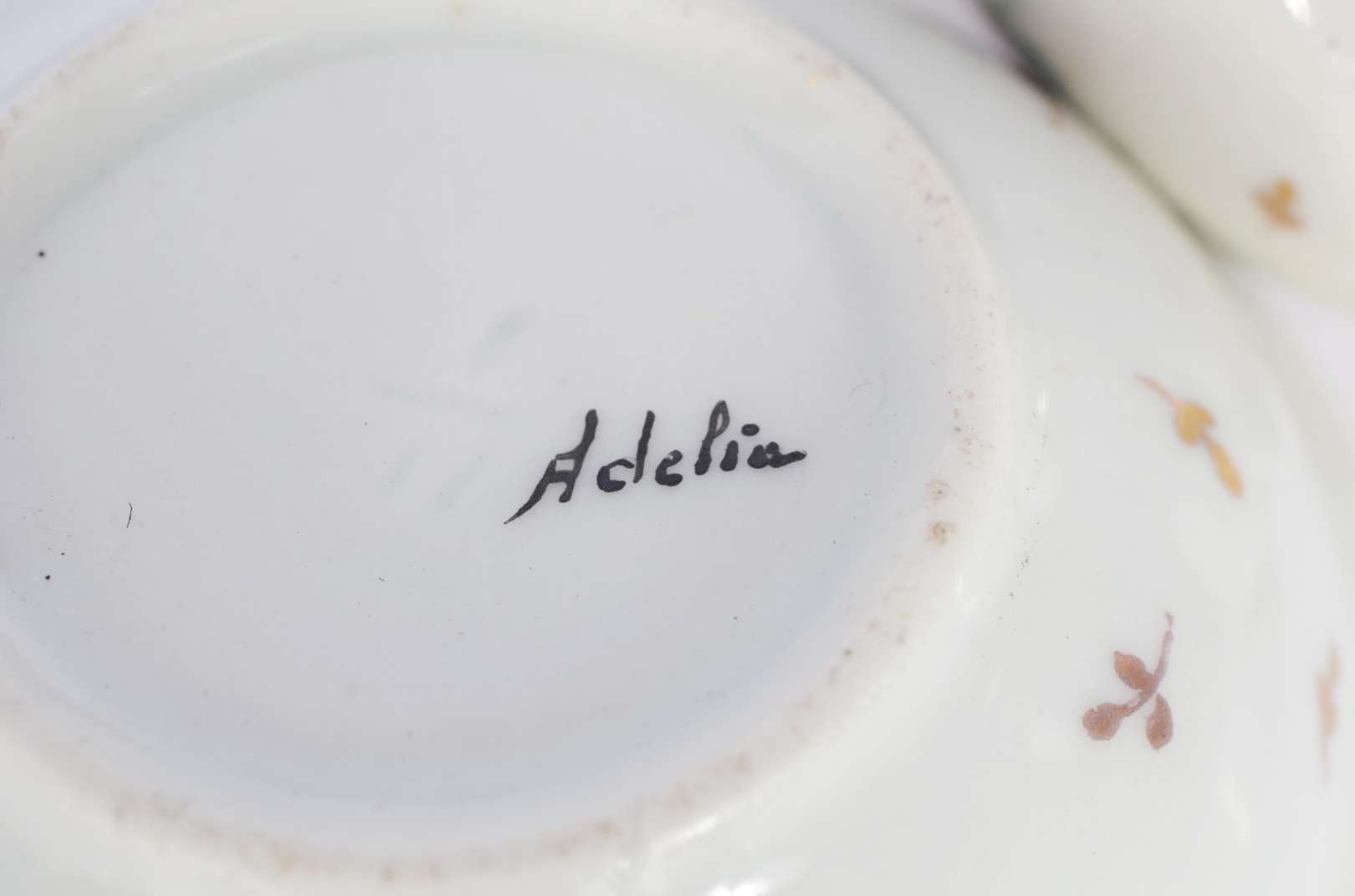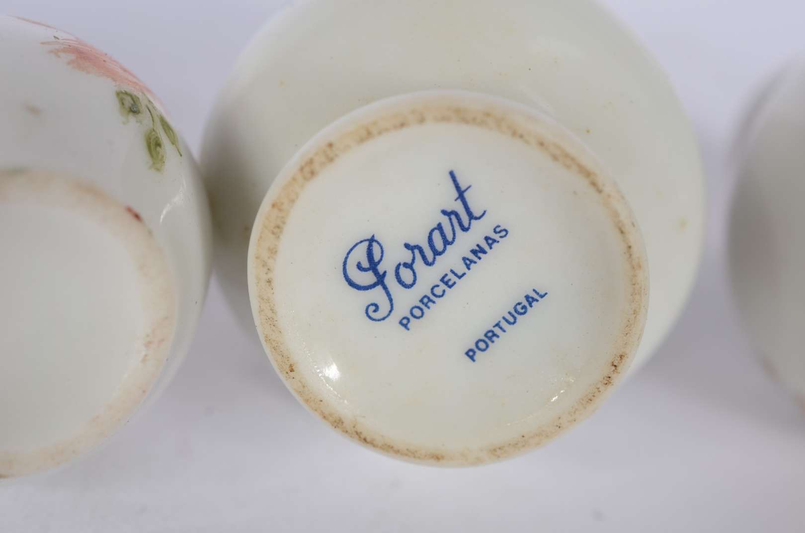 Par de medalhões de porcelana "Dom Pedro" decorados com cenas românticas em policromia sobre fundo amarelo e guirland...
