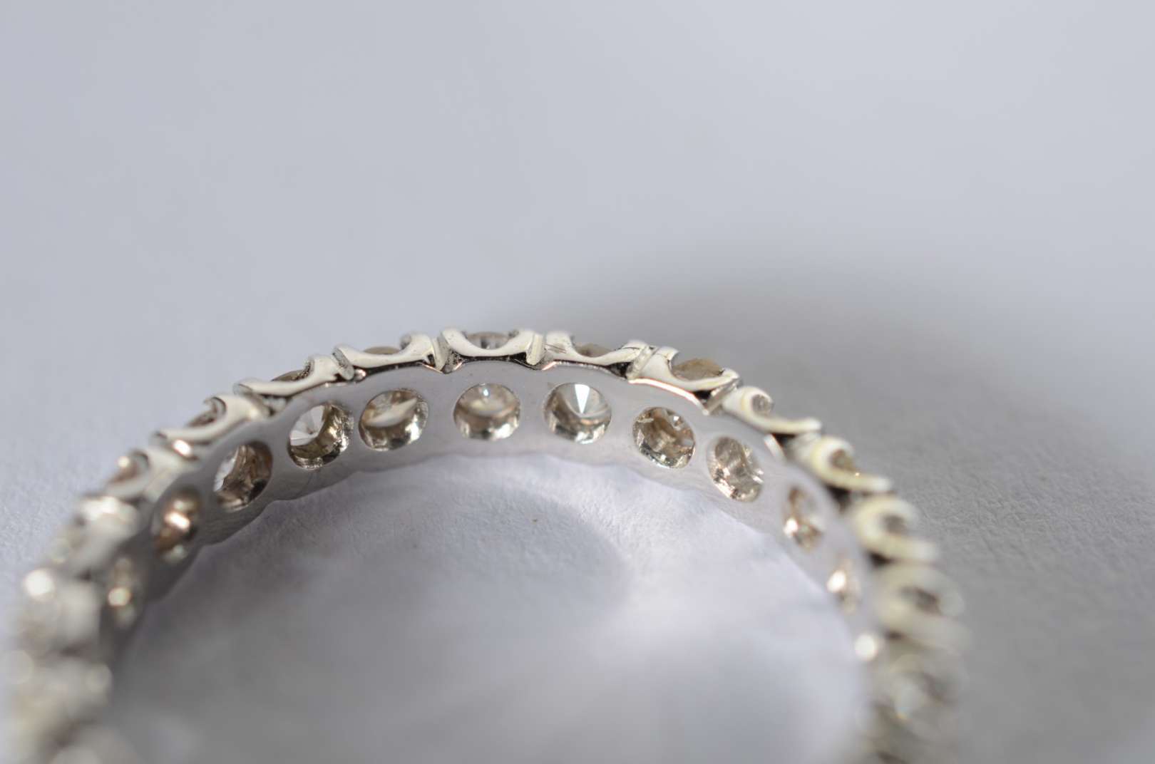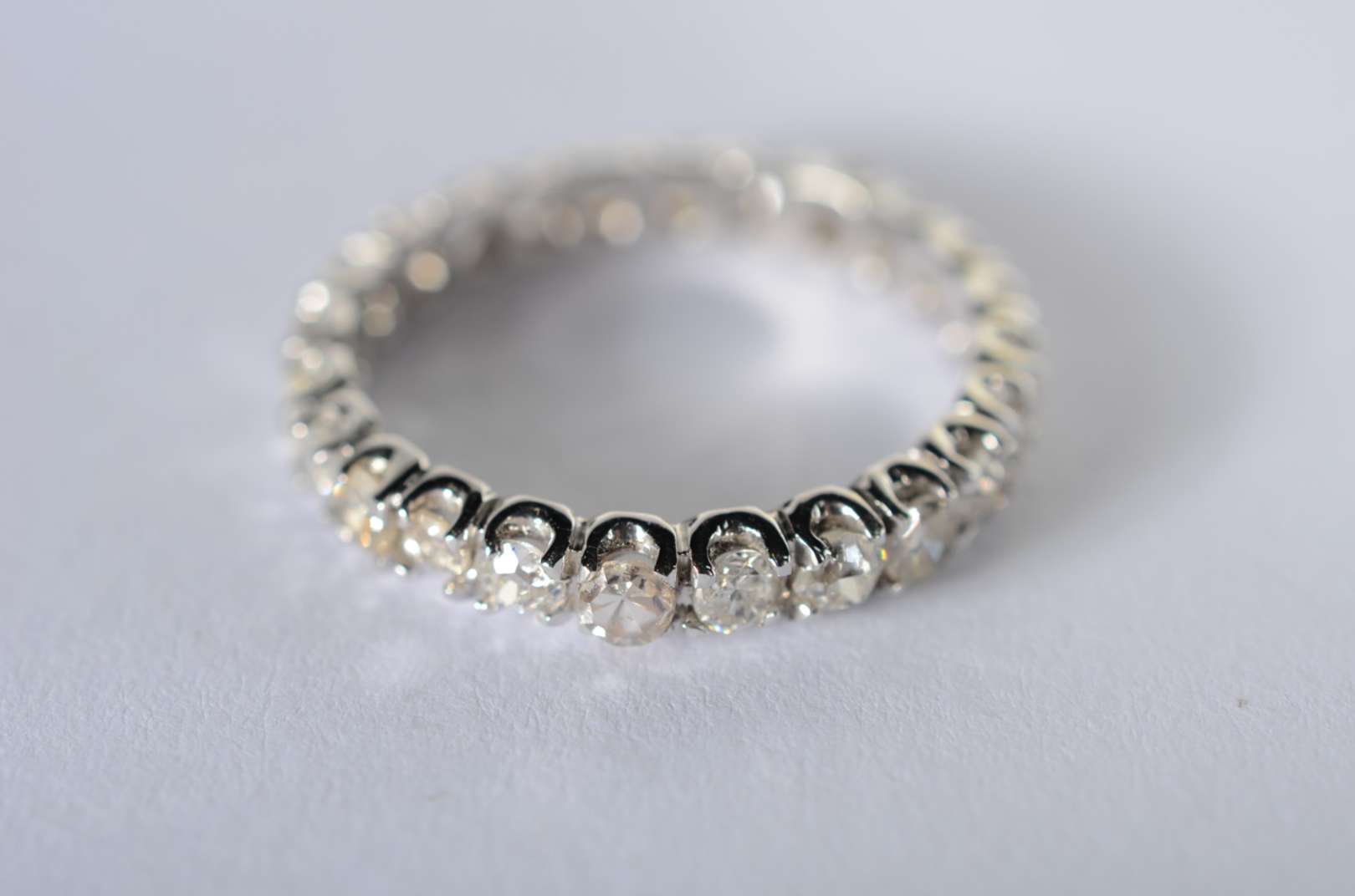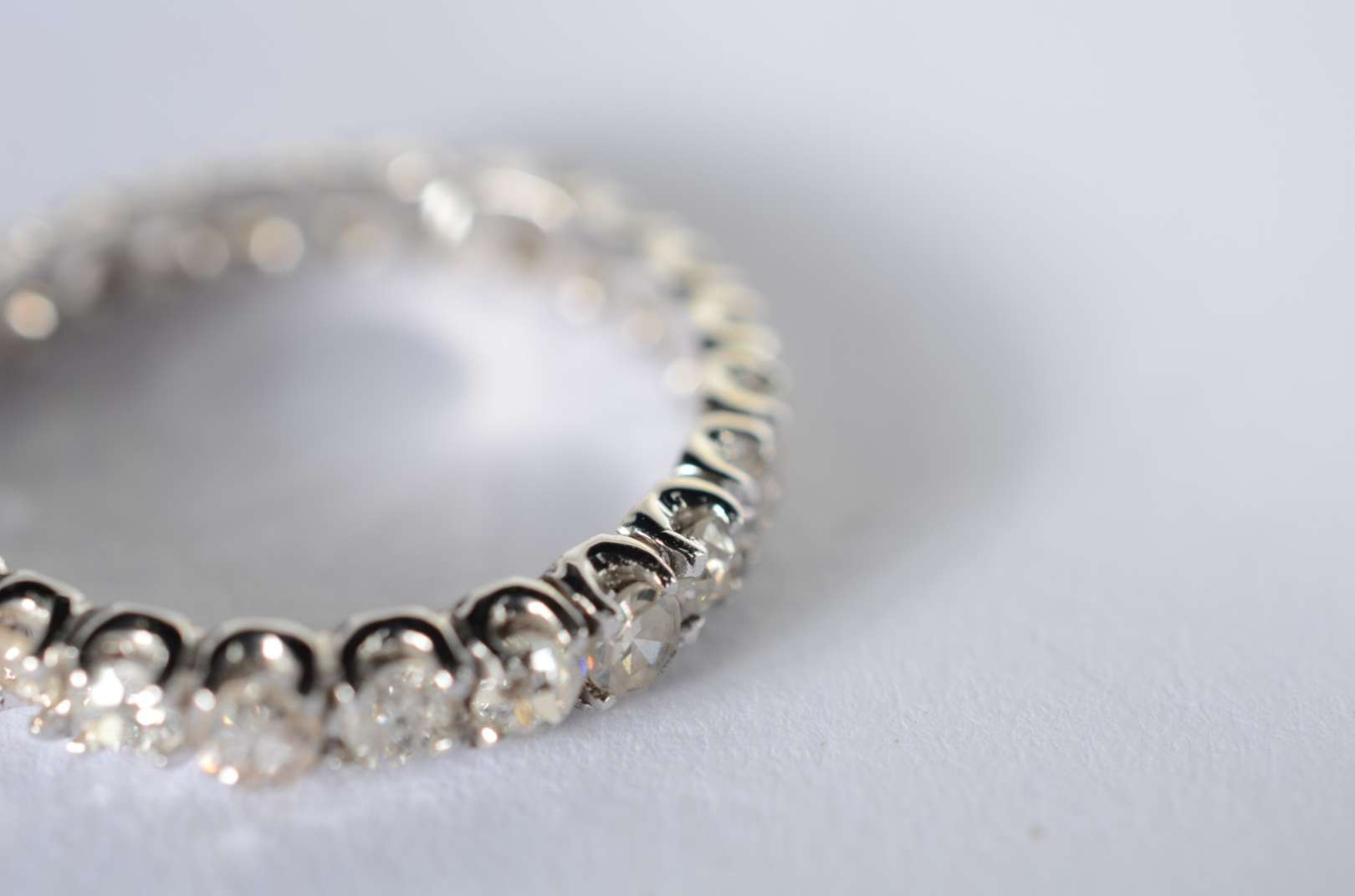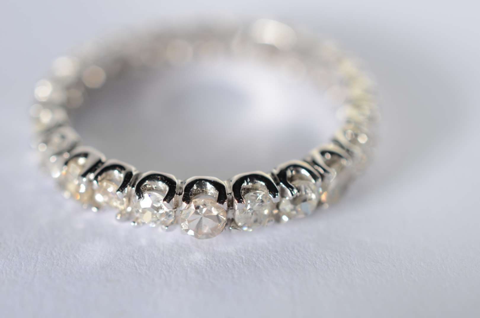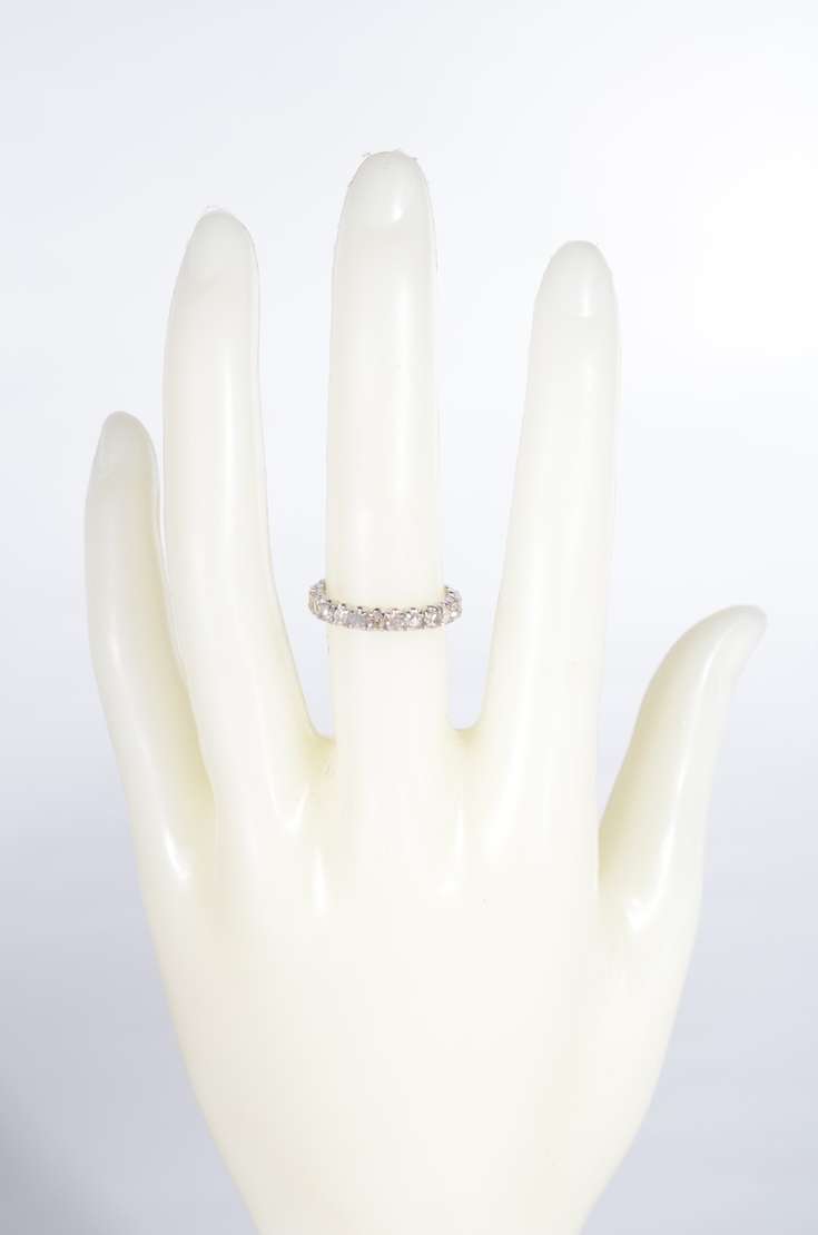 Meia aliança de ouro branco cravejada com 9 brilhantes de 0,03 ct - total 0,27 ct, aro 16. (Por motivos de segurança ...