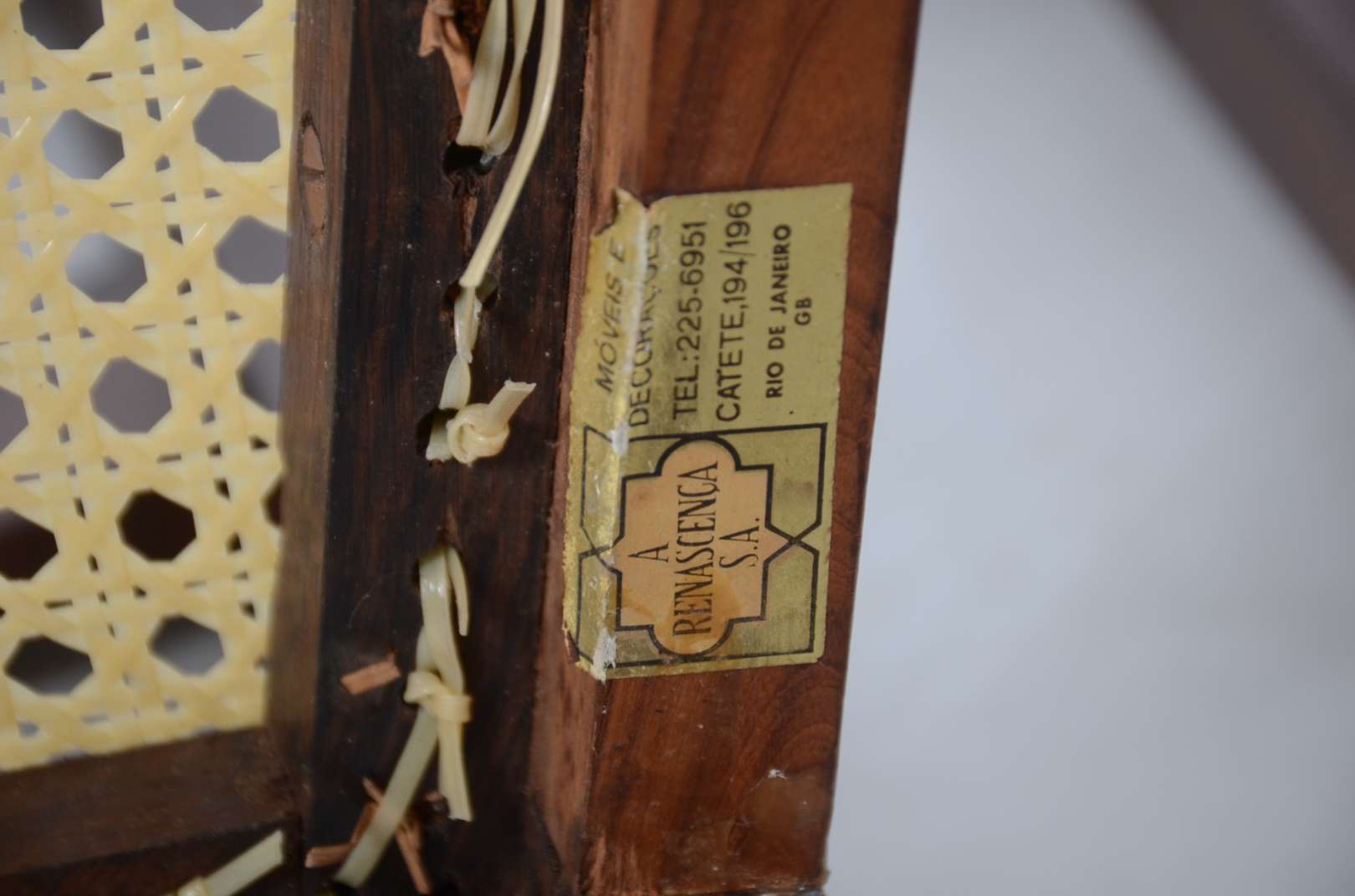 Armário de madeira nobre com uma porta com espelho bisotado, detalhe com palhinha e entalhes. Parte interna com gavet...
