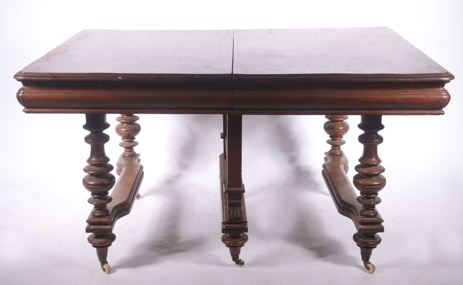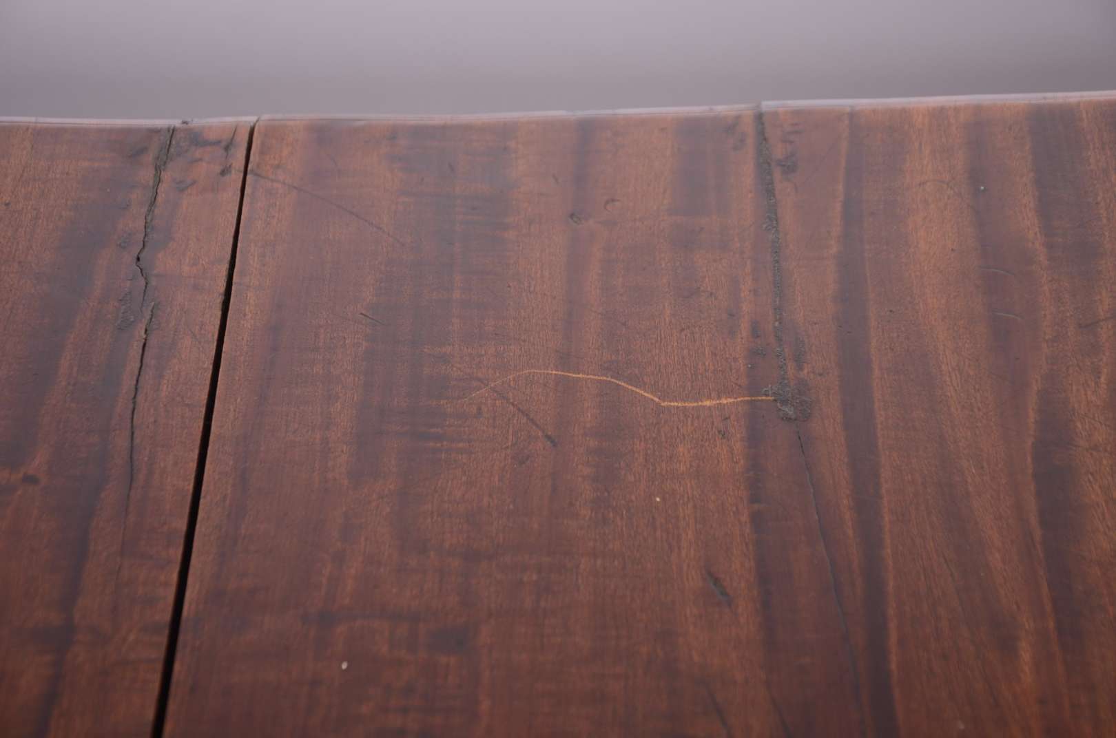 Mesa retangular de madeira nobre filetada, gaveta central e pernas retas. Entrada da chave faltando pequenas partes. ...