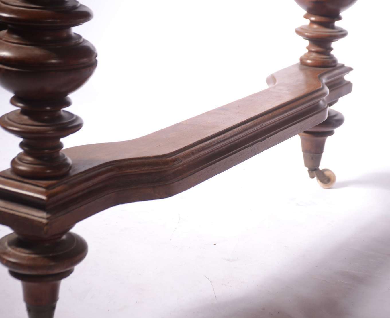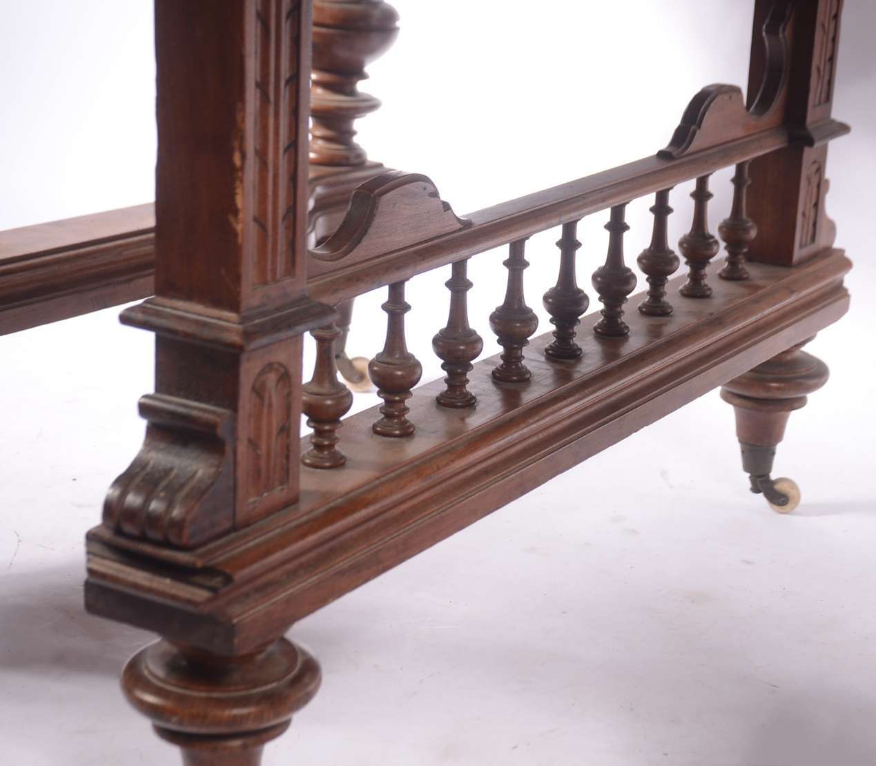 Móvel etager de madeira nobre, parte inferior com duas portas e duas gavetas, tampo de mármore (fios de cabelo). Alça...
