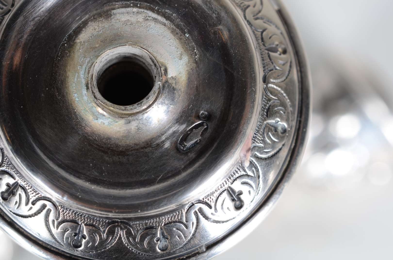 Par de castiçais de prata portuguesa, contraste Águia da joalheria Topázio, bases recortadas. Peso da prata: 830 g. (...